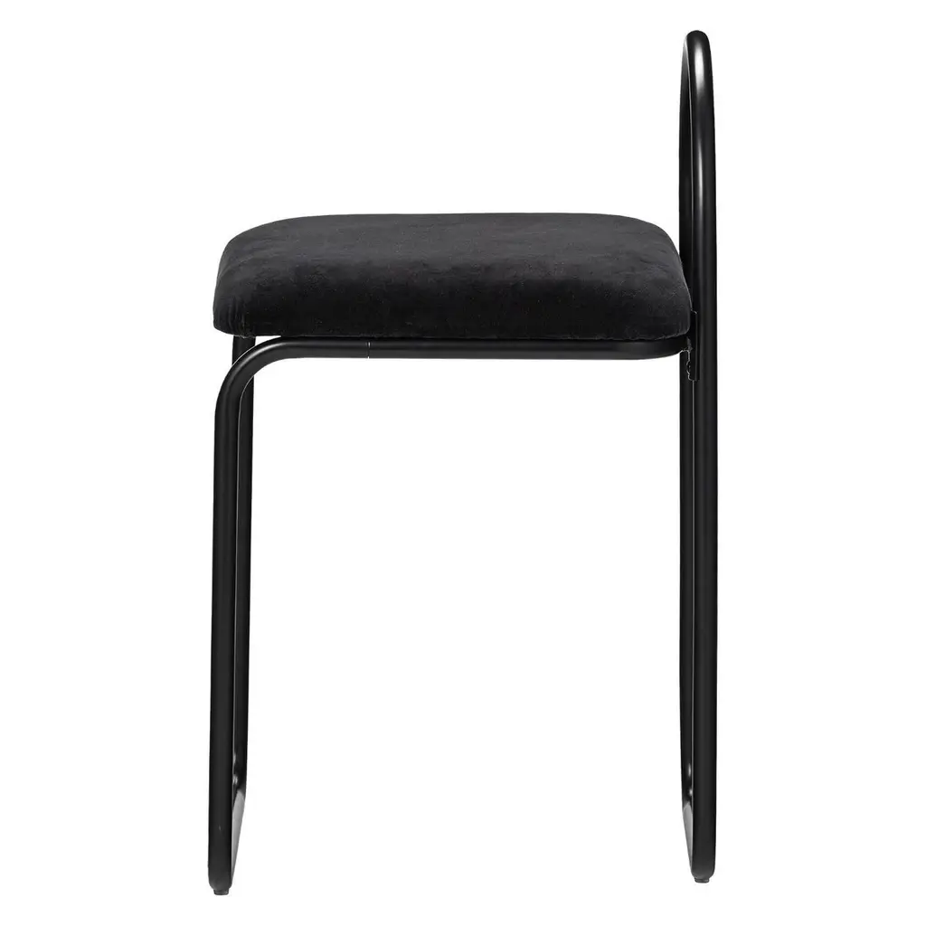 Anthracite velvet Minimalist dining chairDimensions: L 37 x W 39 x H 68 CMMaterials: Velvet, steelThe collection includes benches, chairs, shelves and mirrors in a wide variety of sizes.