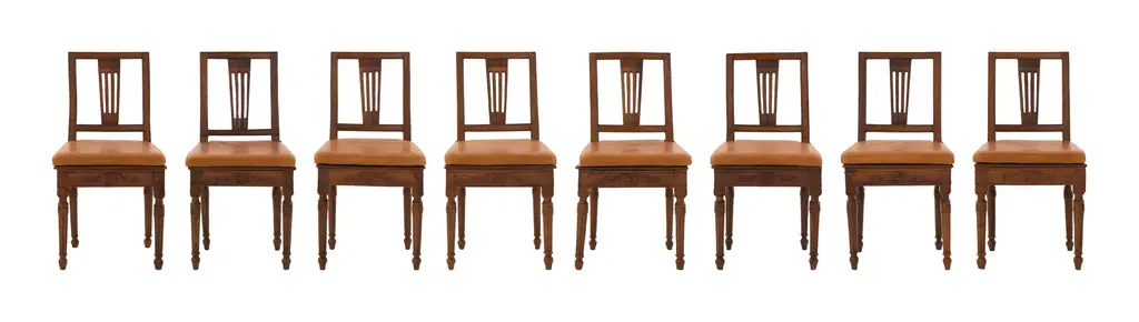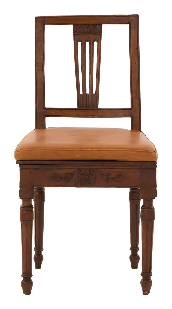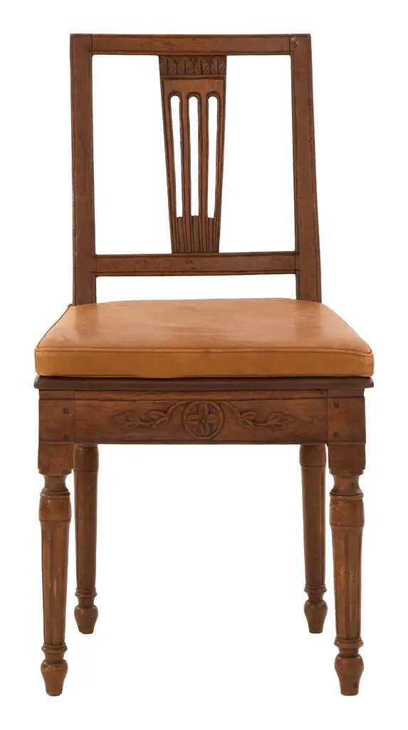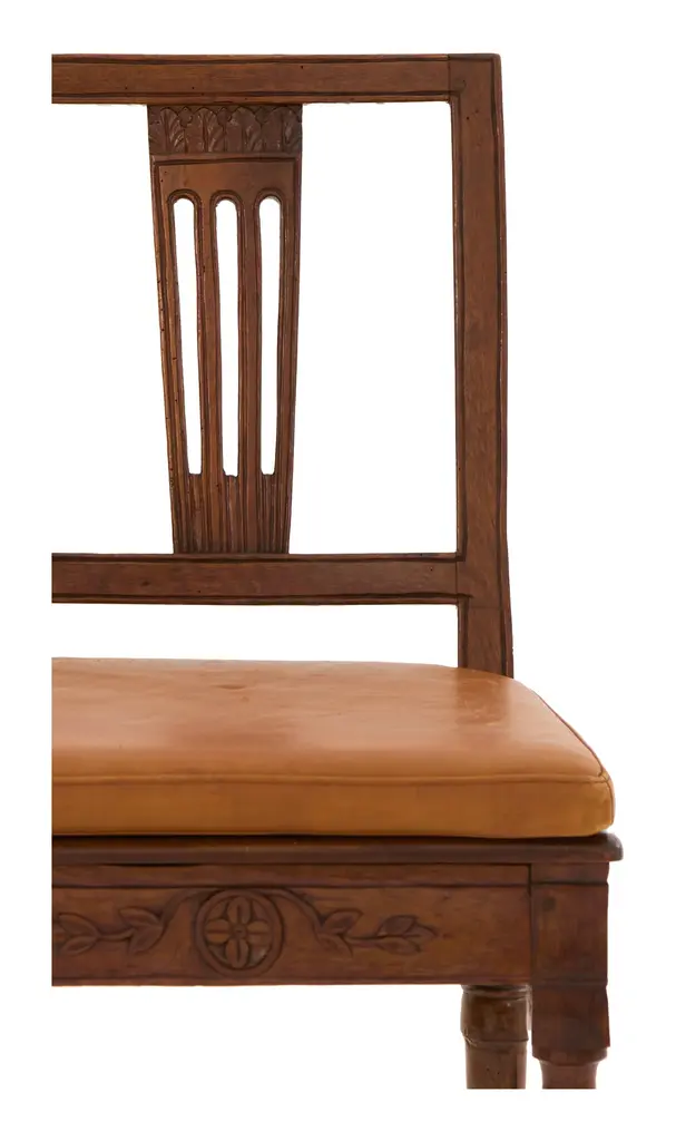 •patinaed wood frame •original cane seat •removable leather cushion •hand carved details •late 18th century •italy Dimensions:• 18.5"W x 19.5"D x 34.5"H •seat with cushion: 15.75"D x 19"H •without cushion: 15.5"D x 17"H •up to 8 available (pending availability)