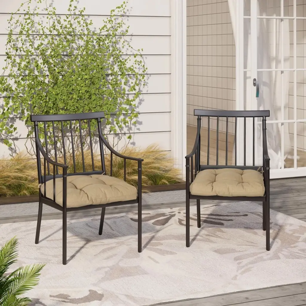Aoodor 19x19x5 Inch Tufted Outdoor Chair Cushions, Water And Fade Resistant Polyester Dining Chair Pads With Ties For Patio Furniture, Set Of 2