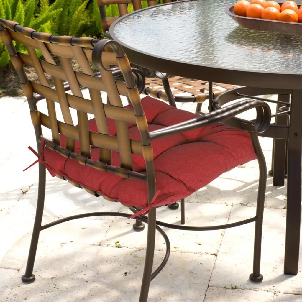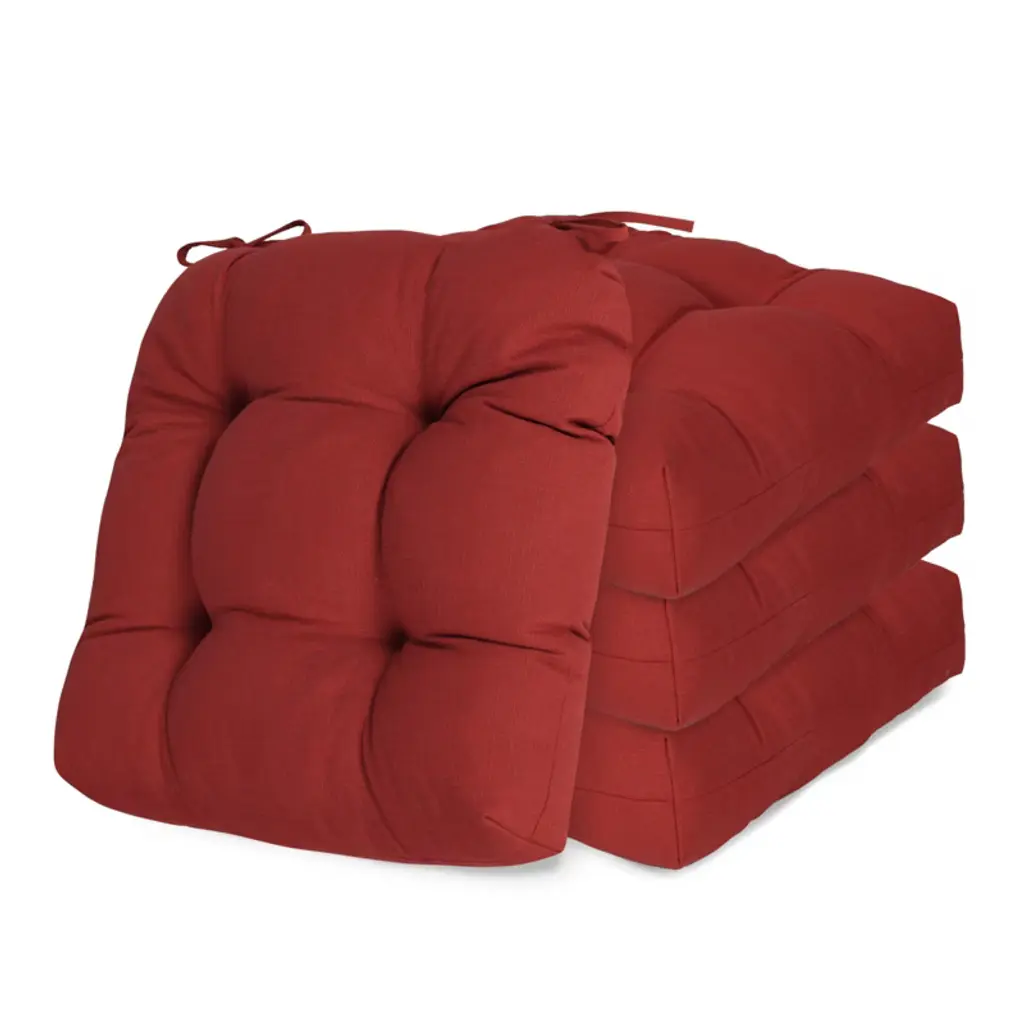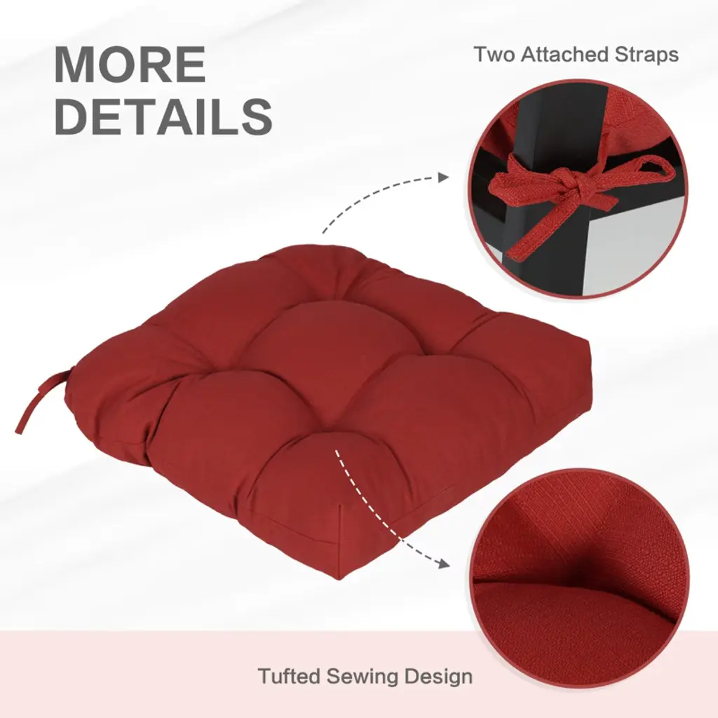 Aoodor 19" x 19" x 5" tufted outdoor chair cushions combine functionality and style for patios, balconies, or indoor spaces. The UV-resistant and fade-resistant polyester cover withstands over 1,000 hours of direct sunlight, while the water-resistant TPU lining ensures weather resistance and durability. Filled with PP cotton and crumb foam, these 5-inch thick cushions are soft and supportive, offering ultimate comfort. Straps on two corners secure the cushions to chairs; the elegant tufted design prevents filling from shifting, ensuring even distribution. Available in five color options to complement various outdoor furniture styles, these cushions are ideal for both indoor and outdoor dining and lounge chairs.