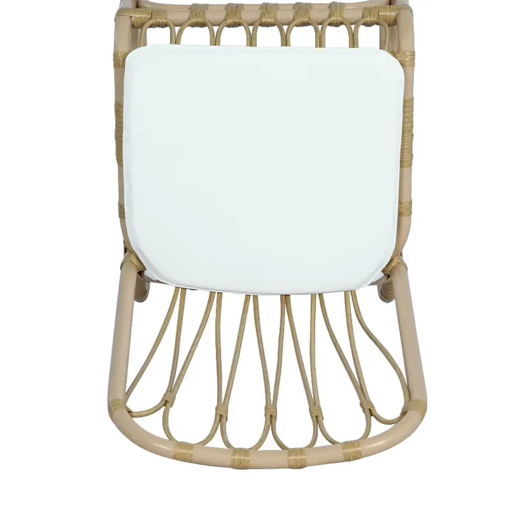 This outdoor chair features a durable iron frame and elegant hand-woven rattan, designed to withstand the elements. With a weight capacity of 400lbs, it provides sturdy, comfortable seating for all. The unique petal-shaped backrest adds a stylish touch, while adjustable foot pads allow for height customization on uneven surfaces. The 1.2-inch thick cushions offer extra comfort and are covered in washable polyester fabric with a zipper for easy cleaning. Available in two colors, this chair comes fully assembled and requires minimal maintenance. Simply wipe with a cloth to keep it looking fresh, making it perfect for any outdoor space