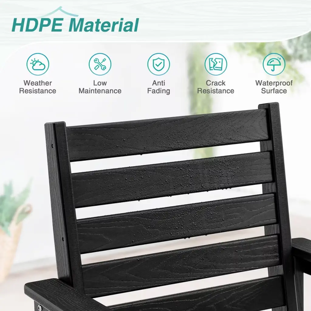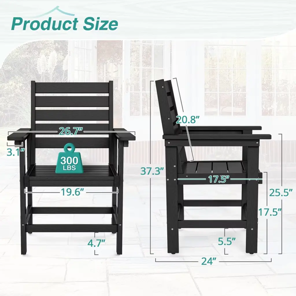 Weather-Resistant Design: These outdoor dining chairs are constructed with durable HDPE material and 304 stainless steel screws, making them waterproof, sunproof, and windproof. This ensures long-lasting performance without fading or peeling, even in harsh weather conditions. Low Maintenance: Keeping your patio dining chairs looking like new is easy. Simply wipe them down with warm water and a soft bristle brush whenever dirt or grime builds up, giving you more time to relax and enjoy your outdoor space. Ideal Quantity: Each chair measures 26.7 D x 24 W x 37.3 H, with a 6-inch gap between each seat for easy movement. Choose the right number of chairs based on your dining table size for a comfortable setup. Comfortable Seating: The seating area is 19.6 D x 17.5 W x 17.5 H, offering ample space to relax while enjoying your meals. The high backrest (19.6 D x 20.8 H) and armrests provide excellent support, ensuring a comfortable and stable seating experience. Easy Assembly: Assembling each chair takes less than 30 minutes. All necessary hardware and step-by-step instructions are included in the package. Additionally, an assembly video is available to guide you through the process.
