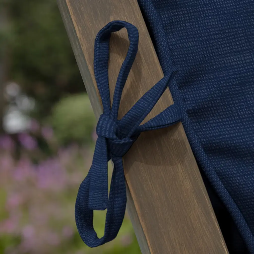 The ARDEN Plush Blowfill 1-Piece Dining Chair Cushion is made with soft polyfiber fill and long-lasting outdoor polyester fabric with PFAS-Free C0 treatment. Creating an ultra-comfortable outdoor dining cushion that is also eco-friendly and skin safe for your family. This outdoor chair cushion measures 21in W x 40 in L x 5 in T (Back: 21 in W x 21 in H and Seat: 21 in W x 19 in L). The 100% printed polyester outdoor fabric resists fading, so your patio cushion looks vibrant for longer. Skin-safe C0 water protection helps your dining cushion withstand continued outdoor use while cleaning easily with just soap and water for low-maintenance upkeep. Four sets of ties make sure your outdoor chair cushion stays firmly in place, while 2 tufts to add a decorative touch. Inside this outdoor chair cushion is 100% polyfiber blowfill to help it retain shape and provide long-lasting comfort during outdoor use. Made from 100% recycled plastic bottles, the polyfiber fill provides an environmentally friendly and durable option for your backyard patio. Although this dining patio cushion is both water and UV-resistant, we recommend bringing it indoors when it rains or when not in use to preserve its lifespan and keep it looking beautiful.