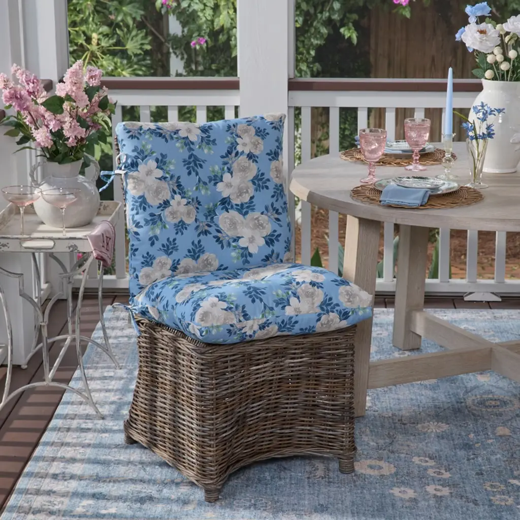 The Arden x Alexandra Kay Plush Blowfill Chair Cushion 2-Pack is made with soft polyfiber fill and long-lasting outdoor polyester fabric with PFAS-Free C0 treatment. Alexandra Kay collaborated with the Arden design team to bring her palette and style to this ultra-comfortable outdoor dining cushion that is also eco-friendly and Skin-safe for your family. This outdoor chair cushion measures 21in W x 40 in L x 5 in T (Back: 21 in W x 21 in H and Seat: 21 in W x 19 in L). The 100% printed polyester outdoor fabric resists fading, so your patio cushion looks vibrant for longer. Skin-safe C0 water protection helps your dining cushion withstand continued outdoor use, while cleaning easily with just soap and water for low-maintenance upkeep. Four sets of ties make sure your outdoor chair cushion stays firmly in place, while 2 tufts to add a decorative touch. Inside this outdoor chair cushion is 100% polyfiber blowfill to help it retain shape and provide long-lasting comfort during outdoor use. Made from 100% recycled plastic bottles, the polyfiber fill provides an environmentally friendly and durable option for your backyard patio. Sink into the plush design and enjoy your chair cushion set while sipping coffee with family or cocktails with your friends.