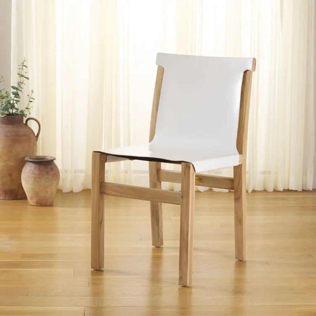Introducing The Dining Chair, where elegance meets craftsmanship. Crafted from solid Teak wood and adorned with genuine leather, this chair is the epitome of luxurious dining. Featuring a seat and seat back enveloped in supple leather and accented with studded nails, The Dining Chair offers both style and comfort in every detail. Whether you're hosting a formal dinner or enjoying a casual meal, its impeccable design ensures a sophisticated ambiance in any dining space. Indulge in the artistry of fine furniture with The Dining Chair — where every meal becomes an occasion to savor style and comfort.