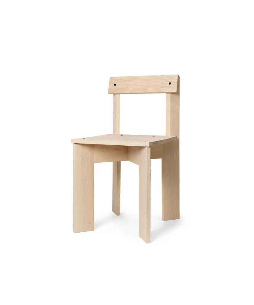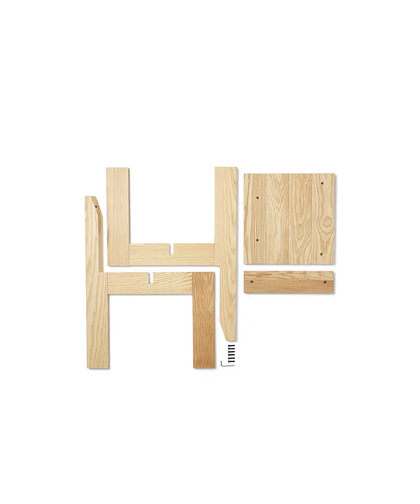 Simply working with the standard dimensions of solid wooden planks, the Ark collection makes a statement with its honest, unapologetic, and readable design aesthetic. Having responsibility in mind from the initial design phase to the flat-packed packaging, the chair is made in 100% FSC™-certified wood and is designed for disassembly to reduce its environmental footprint. Not only a decorative design piece - the Ark Dining Chair also serves as a comfortable seat at the dining table for those long, casual dinners with friends and family. Designed and produced by the Copenhagen-based studio Ferm Living.