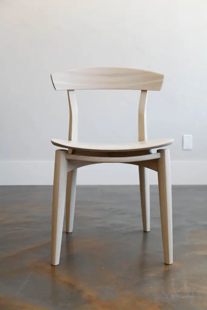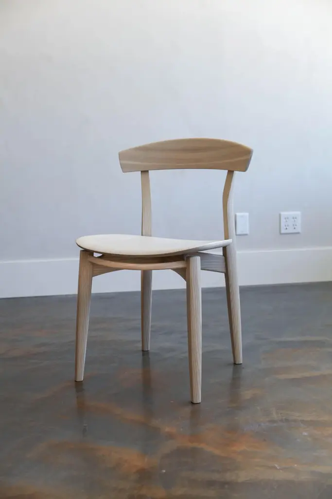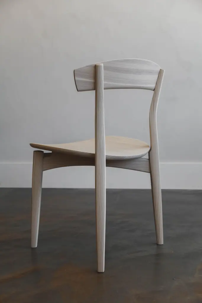 Arla Dining Chair – Modern Scandinavian Style Meets Timeless CraftsmanshipElevate your dining space with the Arla Dining Chair, a refined blend of Scandinavian design and artisan craftsmanship. Handcrafted from solid ash wood, this modern dining chair features clean architectural lines softened by playful curves—capturing the essence of minimalist furniture with a warm, contemporary twist.The Arla Chair’s sculptural silhouette stands out with its unique, sculpted back leg, which breaks elegantly from the seat to create a subtle negative space. This floating detail not only adds visual lightness but also reinforces structural integrity, offering both beauty and durability.Designed for everyday comfort, Arla’s gently contoured seat and curved backrest support long, relaxed meals and conversations. Whether you're furnishing a modern dining room, Scandinavian-inspired kitchen, or minimalist home, the Arla Chair offers a perfect balance of form and function.Key Features:-Scandinavian-inspired minimalist design-Handcrafted from premium solid ash wood-Available in Natural Ash, Black Ash, and Walnut finishes-Ergonomic seat and backrest for superior dining comfort-Floating leg detail adds sculptural elegance-Materials & Finishes:-Ash Wood (shown), Black Ash, WalnutPerfect as a modern wood dining chair, minimalist accent chair, or part of a Scandinavian dining set, the Arla Dining Chair enhances any interior with style, comfort, and lasting quality.