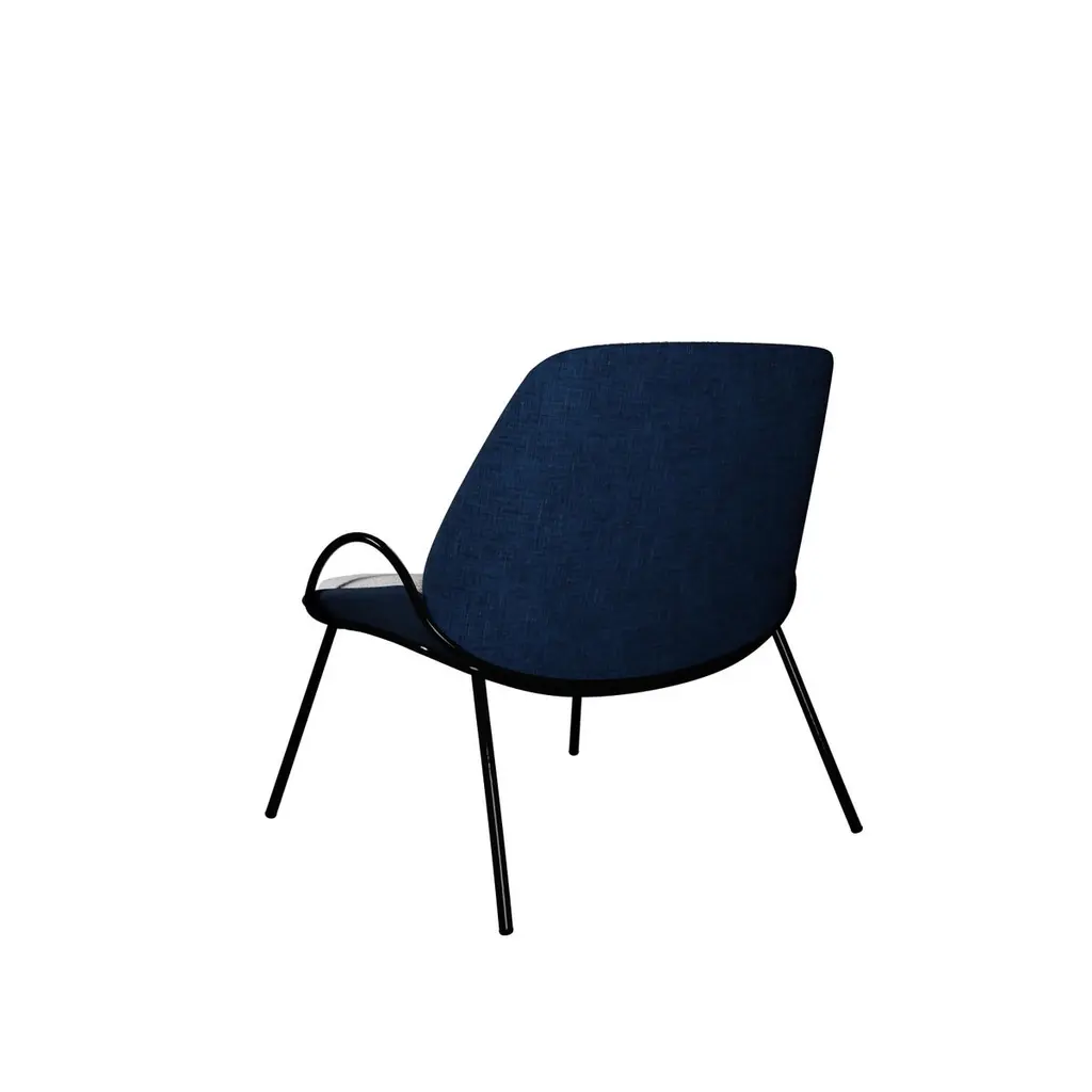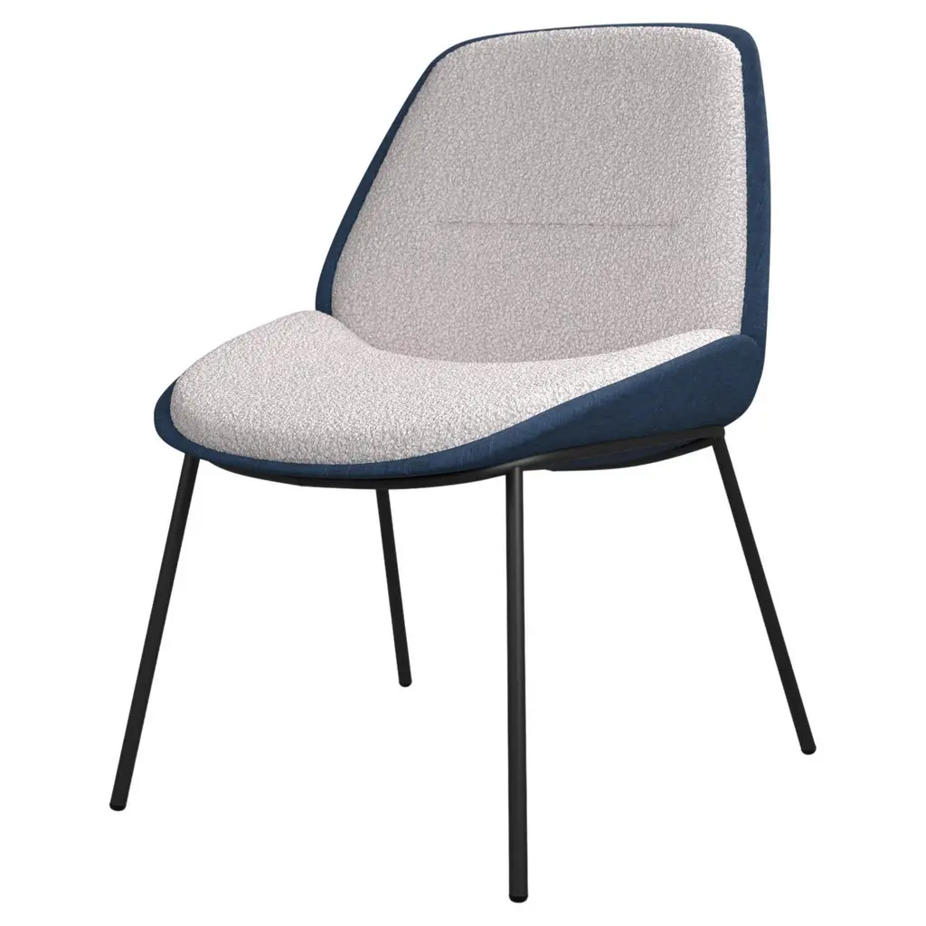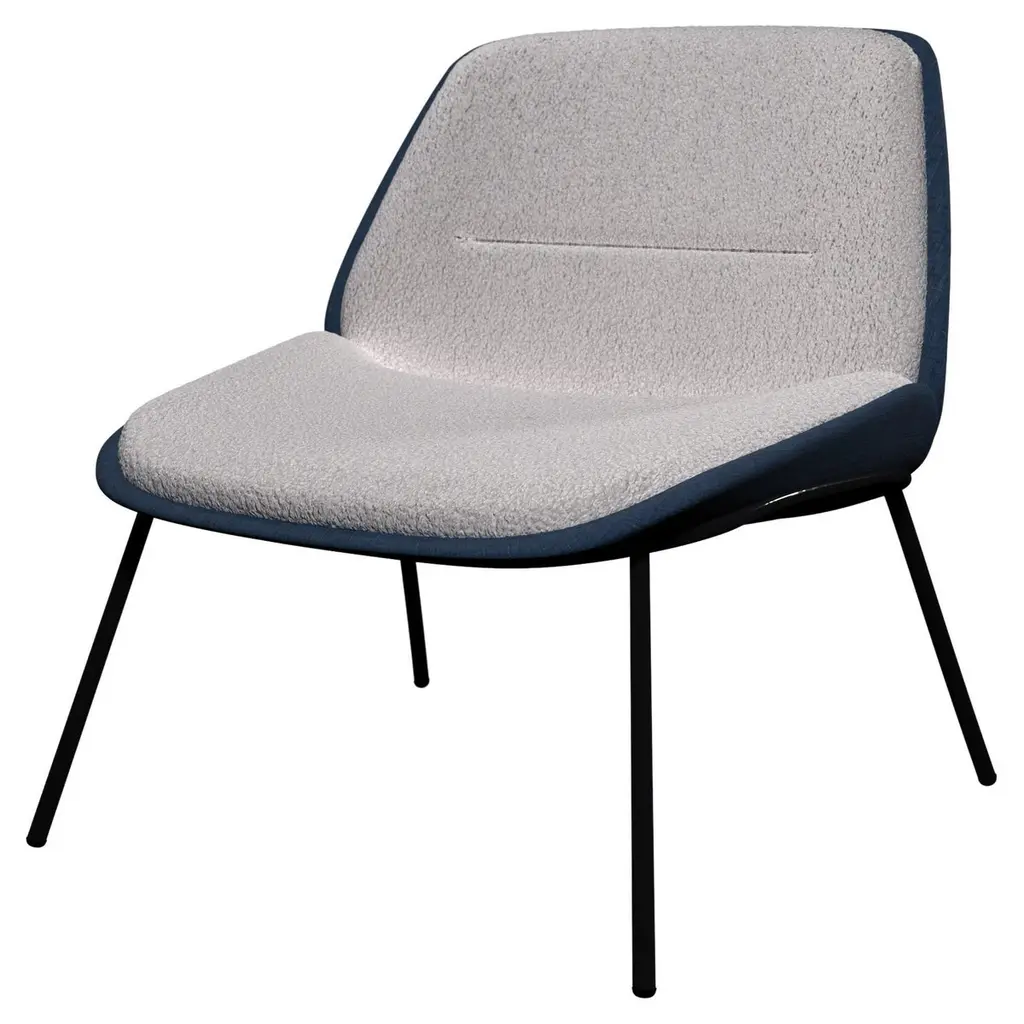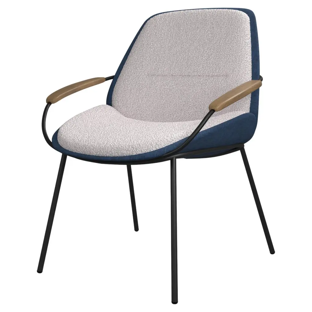 Designed with comfort and design in mind, the Much armchair with half arms is a versatile chair that offers a unique and elegant solution for your home.Crafted from a sturdy black epoxy iron frame, Munch exudes a modern and industrial aesthetic. The outside back is upholstered in a vibrant blue fabric, creating a striking contrast with the inside seat and back, which are upholstered in a luxurious white bouclé. This combination of textures and colors adds a touch of sophistication to any space and can be customizable according to your taste. Each Munch armchair is meticulously handmade by skilled artisans, ensuring the highest quality and attention to detail. We use only the finest raw materials to guarantee durability and longevity. The chair's design prioritizes comfort, providing ample support for long hours of sitting.