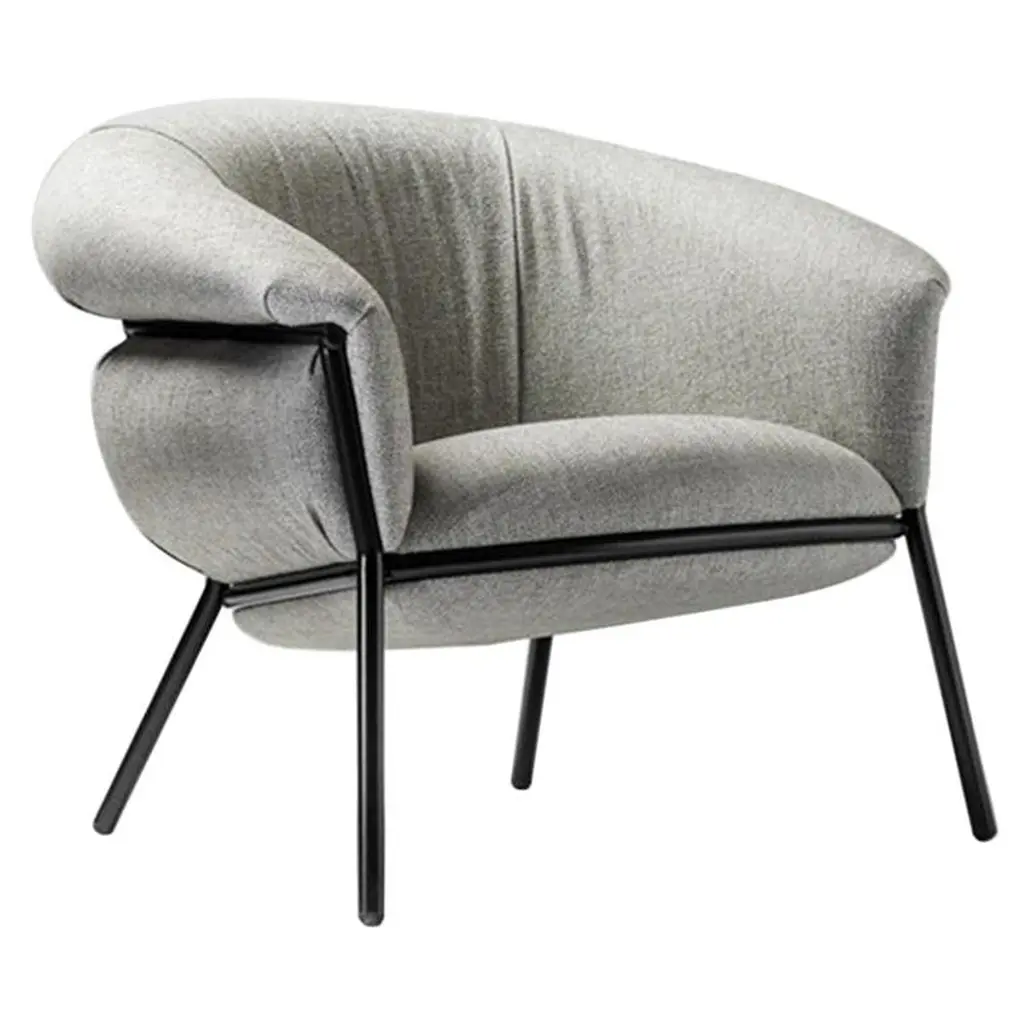 Armchair Munch With Half Arm In Fabric And Boucle Handcrafted By Murmurio