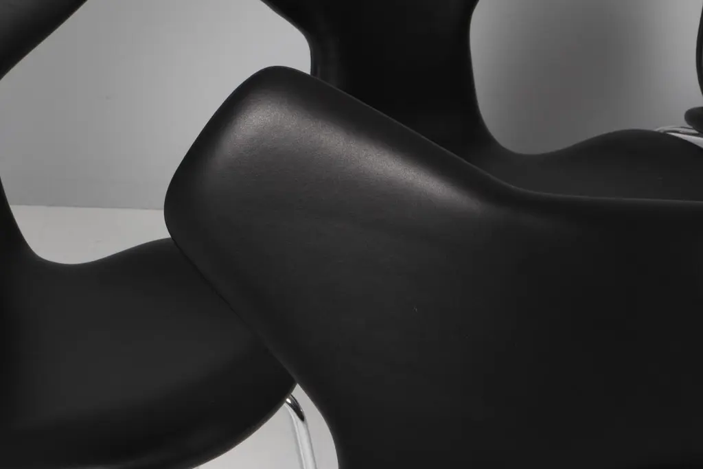 Arne Jacobsen dining chair new upholstered with black aniline leather.Base of chrome steel tube.Model 3130 Grand Prix, made by Fritz Hansen.