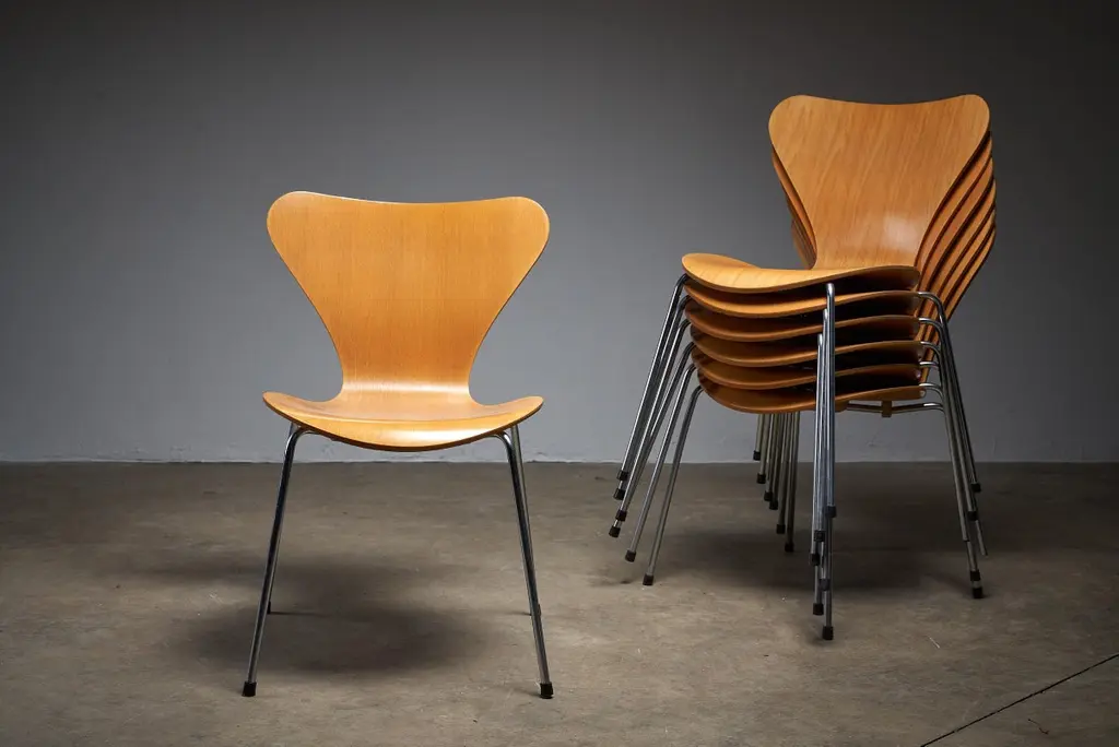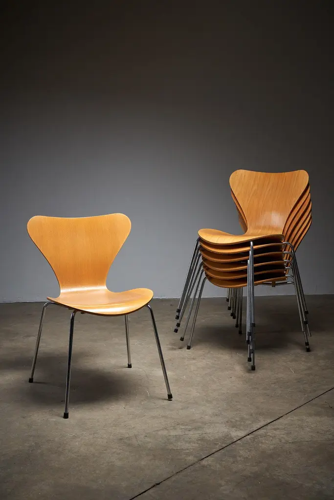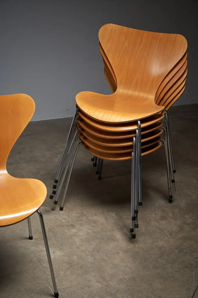 Introducing the iconic Series 7 chairs by Arne Jacobsen for Fritz Hansen. These Scandinavian Modern masterpieces exude timeless elegance, making them perfect for dining or office use. With 12 pieces available, elevate your space with these classic and versatile chairs.