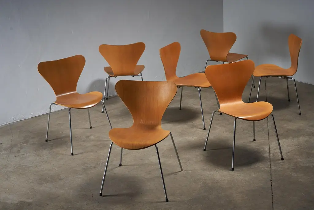 Arne Jacobsen Model 7 Vintage Chairs For Fritz Hanssen, 12+ Pieces