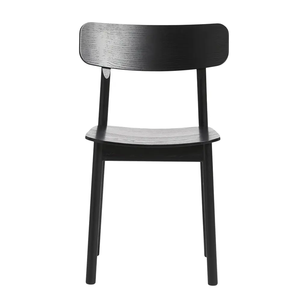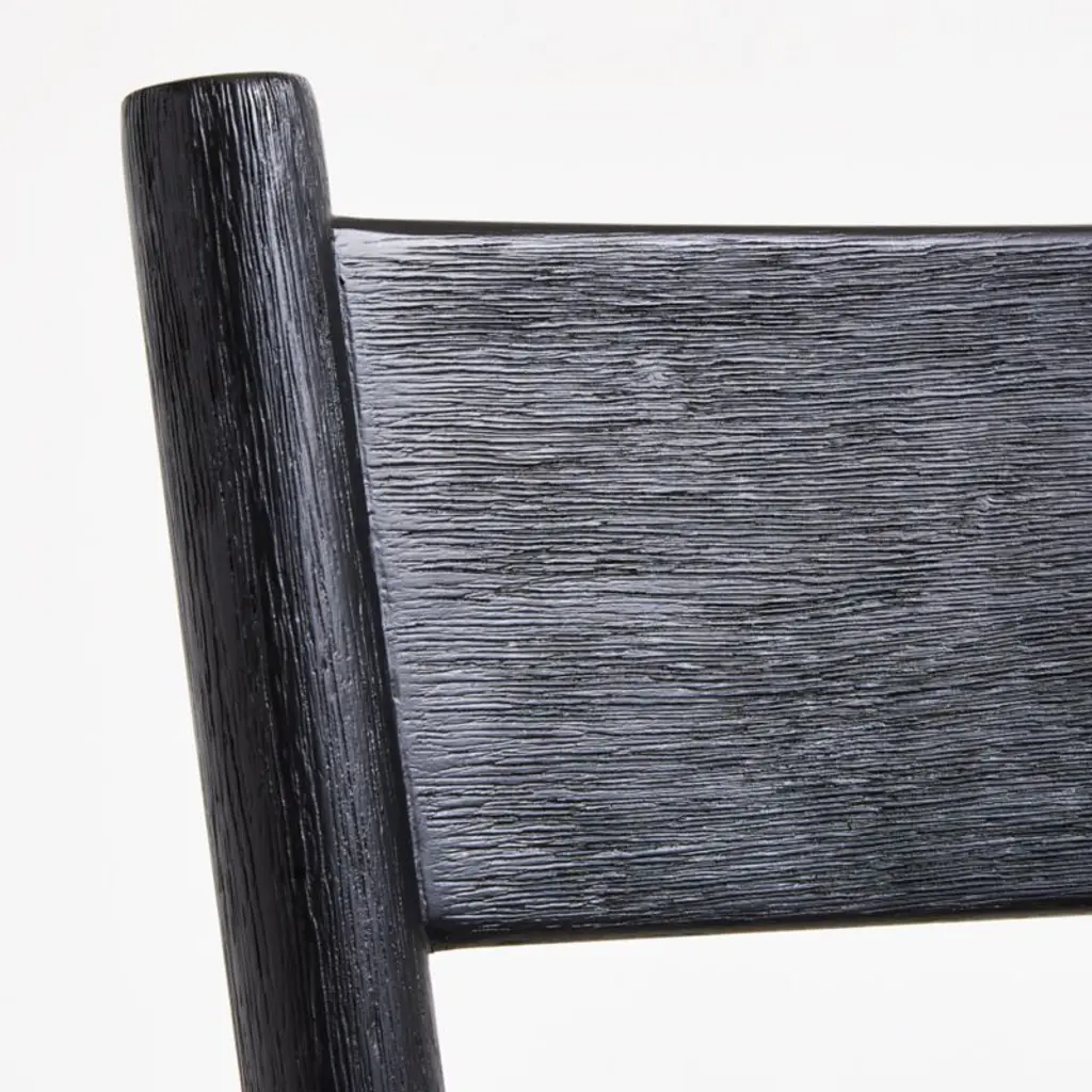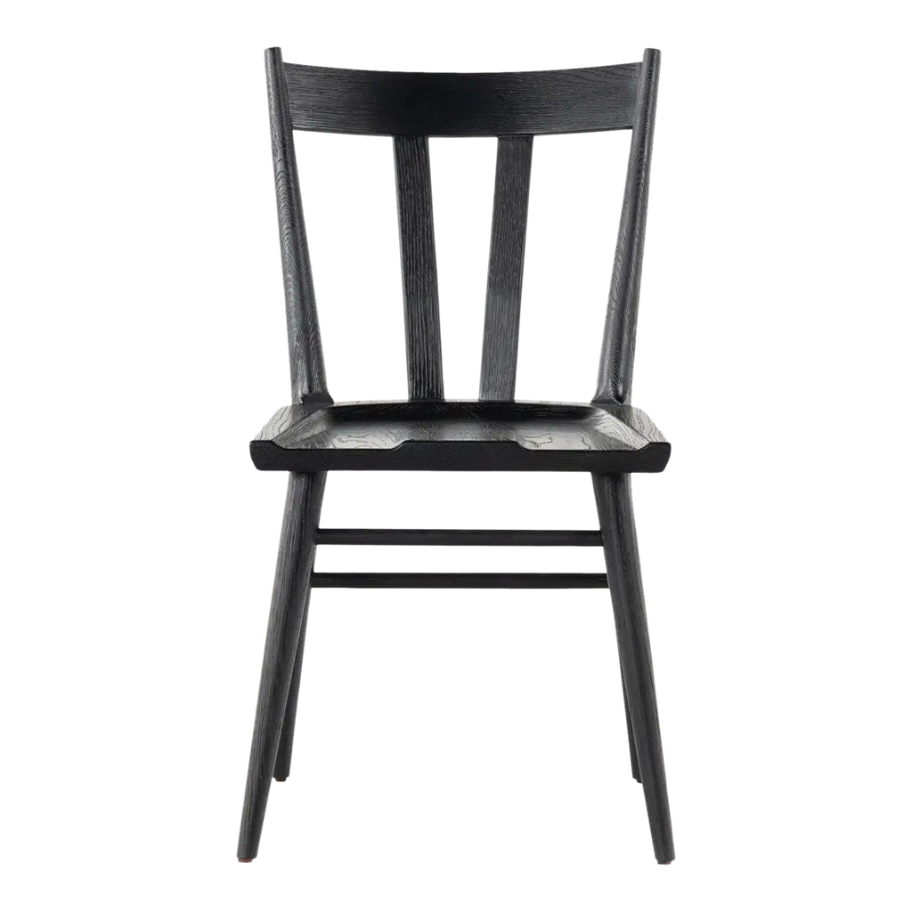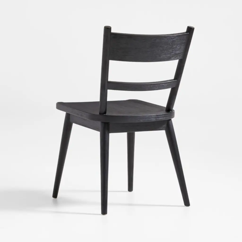 Arno's easy charm lies in its subtle design details. The slightest curve to the chair's slat back provides back support, while the sculpted seat ensures a comfortable sit. Tapered legs splay to give a sense of movement, and eased edges soften all the angles. Wirebrushing and an ebonized black finish call out the grain of this versatile hardwood dining chair, exclusive to Crate & Barrel.