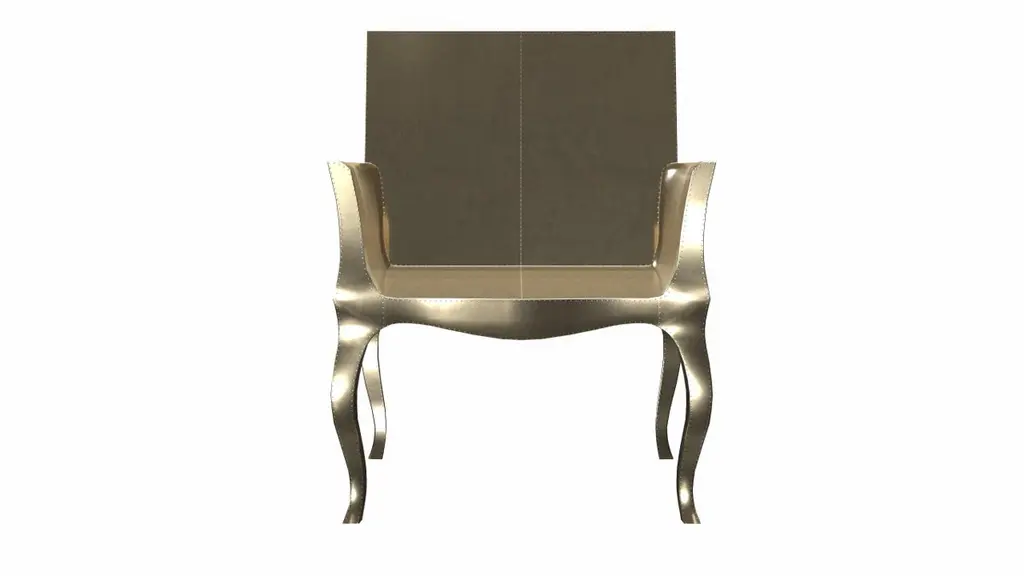 Introducing the Art Deco Chairs, a stunning Art Deco Chairs set designed by the renowned Paul Mathieu for Stephanie Odegard. This elegant Art Deco Chair duo boasts a unique curved profile that exudes a sophisticated and timeless charm, making it the perfect addition to any modern or classic interior.Crafted with utmost care and attention to detail, these Art Deco Chairs are made to order and are available in twelve metal clad finishes, ensuring that you can choose the perfect one to match your individual style and taste. The use of high-quality materials and expert craftsmanship ensure that each Art Deco Chair is not only beautiful but also a true piece of art.The curved legs and side arms of this Art Deco Chair are hand carved from solid pieces of teak. Pattern makers trace and cut complex forms that will cover the chair in a skin of copper, white bronze, brass or antiqued white bronze The metal finishes will tarnish over time. Regular non-abrasive household metal polishes can be used to restore the original luster.Overall, if you're looking for a piece of furniture that combines luxury, comfort, and style, then the Art Deco Chairs is an excellent choice. With its distinctive curved profile and multiple finish options, this Chair set is sure to elevate the look of any room it is placed in, and be a beloved addition to your home for years to come.The images shown in this listing are shot in different lighting conditions and/or are 3D illustrations. We encourage our customers to please request a sample or a full sample set of 12 finishes so that they can experience the finish first hand. Art Deco Dining Room Chairs in Smooth Brass by Paul Mathieu for S. OdegardSize- 26"x 27"x 33"HMaterials - Brass, Metal sheet, Teak, Wood, MetalTechniques: Hand-Crafted, Hand-Carved, Metal Work, Wood Work, Metal Wrapping, PolishedPlease note that moisture in air, sudden change in temperature and natural movement of wood over time causes the metal to wrinkle or bubble up. We use well seasoned, reclaimed teak and high quality marine grade MDF (wherever technically possible) to avoid and delay the mentioned changes. However a perfect stability of metal cannot be guaranteed. Please note that our smooth finish metal clad pieces will have some unavoidable tool marks. This is proof that everything is done by hand. The smooth finish will not come out like a machine made perfect surface and the master artisan will do their best to make it look as good/clean/stable/perfect as he possibly can.The antique white bronze finish is hand done by using an acidic chemical over the white bronze finish to recreate a natural patination. Like with the natural patination of silver, copper, or brass, the final result and color uniformity of the patina cannot be guaranteed. The goal of this finish is to achieve rainbow-like shades with dull, shiny, cloudy, and streaky patches to give an illusion of antiquing. Please note:None of our metal clad pieces are treated with a protective “finish” thus enabling the items to age naturally over time. We will of course polish them well before we pack them. a) Copper oxidizes faster than the other metals. In six to twelve months it will most likely lose its shine and will gradually turn to different shades of brown and/or green/blue. This aging process and its effect is referred to as verdigris. After a year the piece should not change much more. Copper does not rust, but does require periodic cleaning in order to retain its original shine if that the preferred option. ('BRASSO' or any known copper polish can be used to polish copper).b) Brass retains its shine for far longer than others, but will tarnish if not cleaned on occasion. ('BRASSO' is made to polish brass).c) White bronze, has the least tendency to show age or tarnish. If kept in a controlled climate, this metal will hold its shine for years. It can be cleaned with a cleanser and polished with a cloth. d) The antiqued white bronze finish will react with the natural elements the fastest in the beginning but it too will stop reacting and will settle down in a stable state like copper after 6-12 months. Since it is already antiqued and looked like it is tarnished, as described in an earlier message, this fast reaction will not change the over all look. In that way this surface is most forgiving. The images shown in this listing are shot in different lighting conditions and/or are 3D illustrations. We encourage our customers to please request a sample or a full sample set of 12 finishes so that they can experience the finish first hand.