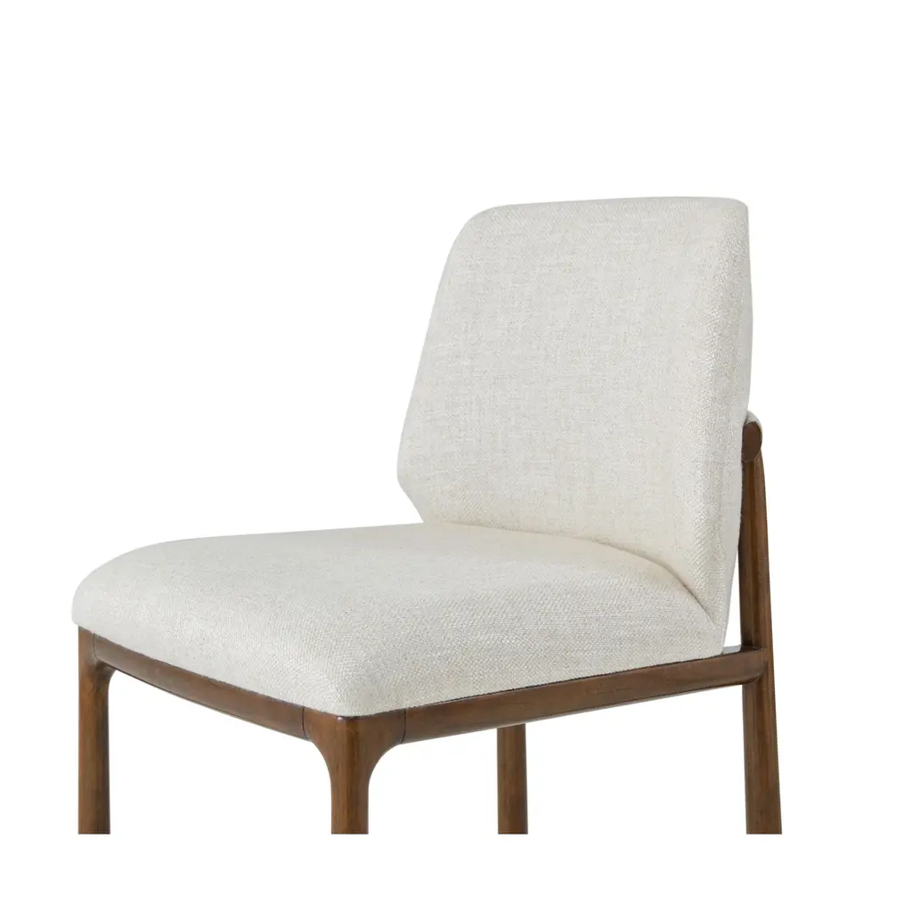 Combining timeless elegance with meticulous craftsmanship, this chair is a perfect addition to any sophisticated dining space. Made from premium beech wood, showcasing gentle curves and a refined design. These chairs are covered in neutral fabric providing a soft and comfortable seating experience. The wood frame is finished in Pyramid Brown, enhancing the natural beauty of the wood. Dimensions: 21.75" W x 23.75" D x 33" "H Seat - 19.25" H