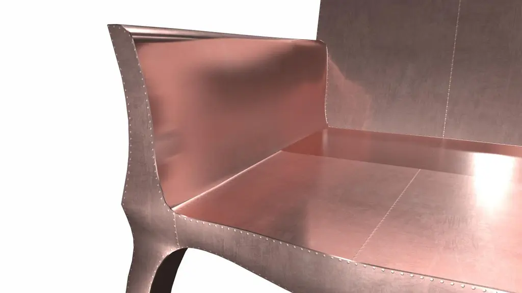 Introducing the Art Deco Chairs, a stunning Art Deco Chairs set designed by the renowned Paul Mathieu for Stephanie Odegard. This elegant Art Deco Chair duo boasts a unique curved profile that exudes a sophisticated and timeless charm, making it the perfect addition to any modern or classic interior.Crafted with utmost care and attention to detail, these Art Deco Chairs are made to order and are available in twelve metal clad finishes, ensuring that you can choose the perfect one to match your individual style and taste. The use of high-quality materials and expert craftsmanship ensure that each Art Deco Chair is not only beautiful but also a true piece of art.The curved legs and side arms of this Art Deco Chair are hand carved from solid pieces of teak. Pattern makers trace and cut complex forms that will cover the chair in a skin of copper, white bronze, brass or antiqued white bronze The metal finishes will tarnish over time. Regular non-abrasive household metal polishes can be used to restore the original luster.Overall, if you're looking for a piece of furniture that combines luxury, comfort, and style, then the Art Deco Chairs is an excellent choice. With its distinctive curved profile and multiple finish options, this Chair set is sure to elevate the look of any room it is placed in, and be a beloved addition to your home for years to come.The images shown in this listing are shot in different lighting conditions and/or are 3D illustrations. We encourage our customers to please request a sample or a full sample set of 12 finishes so that they can experience the finish first hand. Art Nouveau Dining Chairs in Smooth Copper by Paul Mathieu for S. OdegardSize- 26"x 27"x 33"HMaterials - Copper, Metal sheet, Teak, Wood, MetalTechniques: Hand-Crafted, Hand-Carved, Metal Work, Wood Work, Metal Wrapping, PolishedPlease note that moisture in air, sudden change in temperature and natural movement of wood over time causes the metal to wrinkle or bubble up. We use well seasoned, reclaimed teak and high quality marine grade MDF (wherever technically possible) to avoid and delay the mentioned changes. However a perfect stability of metal cannot be guaranteed. Please note that our smooth finish metal clad pieces will have some unavoidable tool marks. This is proof that everything is done by hand. The smooth finish will not come out like a machine made perfect surface and the master artisan will do their best to make it look as good/clean/stable/perfect as he possibly can.The antique white bronze finish is hand done by using an acidic chemical over the white bronze finish to recreate a natural patination. Like with the natural patination of silver, copper, or brass, the final result and color uniformity of the patina cannot be guaranteed. The goal of this finish is to achieve rainbow-like shades with dull, shiny, cloudy, and streaky patches to give an illusion of antiquing. Please note:None of our metal clad pieces are treated with a protective “finish” thus enabling the items to age naturally over time. We will of course polish them well before we pack them. a) Copper oxidizes faster than the other metals. In six to twelve months it will most likely lose its shine and will gradually turn to different shades of brown and/or green/blue. This aging process and its effect is referred to as verdigris. After a year the piece should not change much more. Copper does not rust, but does require periodic cleaning in order to retain its original shine if that the preferred option. ('BRASSO' or any known copper polish can be used to polish copper).b) Brass retains its shine for far longer than others, but will tarnish if not cleaned on occasion. ('BRASSO' is made to polish brass).c) White bronze, has the least tendency to show age or tarnish. If kept in a controlled climate, this metal will hold its shine for years. It can be cleaned with a cleanser and polished with a cloth. d) The antiqued white bronze finish will react with the natural elements the fastest in the beginning but it too will stop reacting and will settle down in a stable state like copper after 6-12 months. Since it is already antiqued and looked like it is tarnished, as described in an earlier message, this fast reaction will not change the over all look. In that way this surface is most forgiving. The images shown in this listing are shot in different lighting conditions and/or are 3D illustrations. We encourage our customers to please request a sample or a full sample set of 12 finishes so that they can experience the finish first hand.