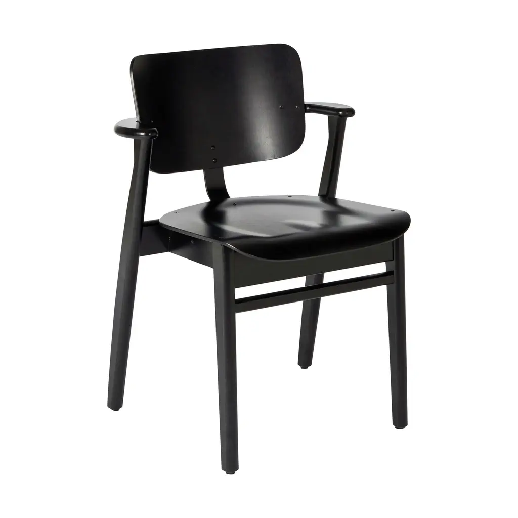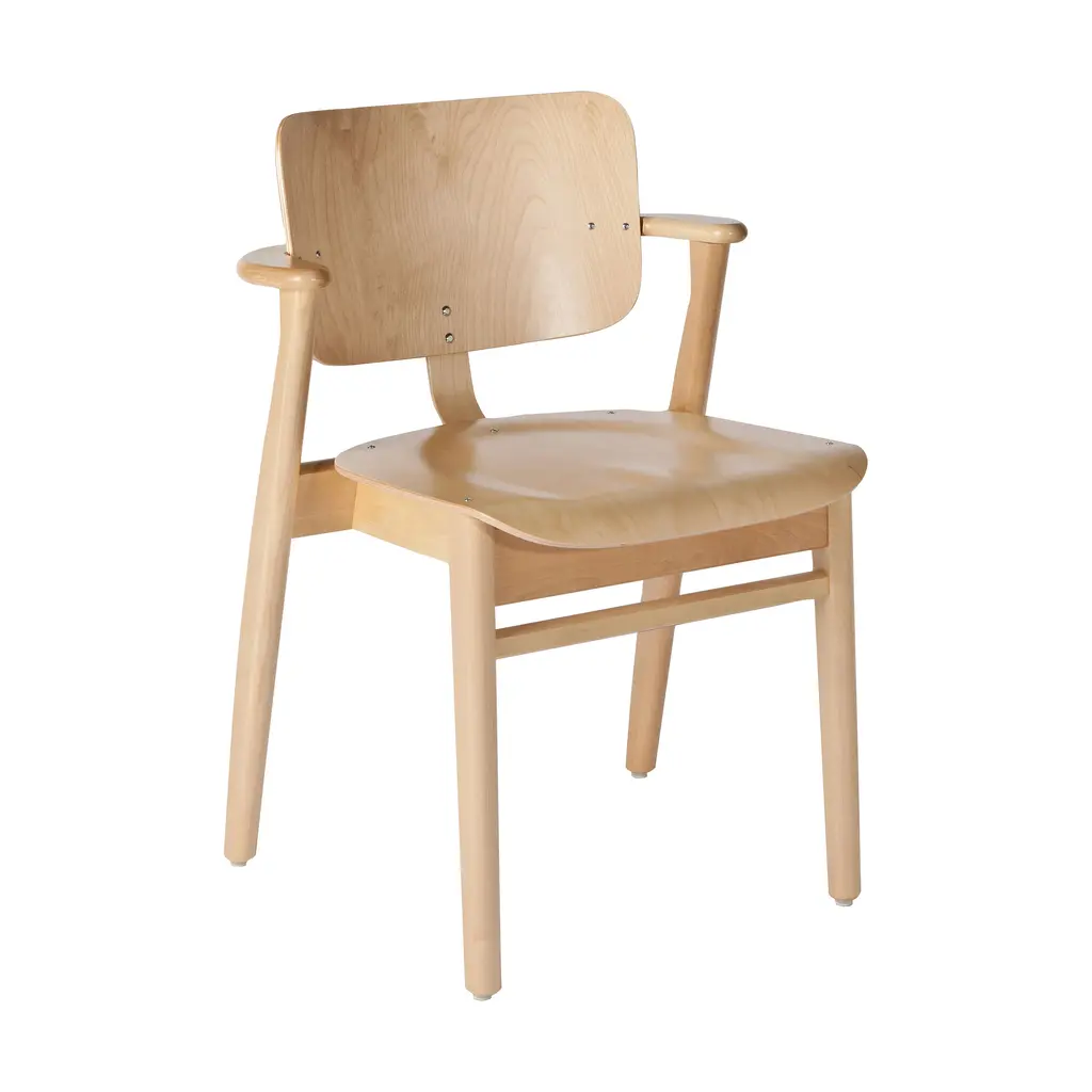 This elegant design from 1946 by Ilmari Tapiovaara was originally created as part of a furniture series for the Domus Academia student housing complex in Helsinki. Also known as “The Finn Chair,” the Domus has a three-dimensionally curved seat that is both ergonomic and highly comfortable, allowing you to sit for long periods of time. Despite the armrests being short, they offer surprising support and serve the function of allowing the chair to be pulled close to a table or desk. This allows the Domus to be suitable as both a dining or work chair and can also be used for seating in your living room. It is also stackable for up to four chairs. Made in Finland from solid oak and birch wood, as well as form-pressed birch veneer for the seat and back core, the Domus Chair measures 31.75h x 22.75w x 21.25”d. It’s made by Artek, a manufacturer with work in MoMA’s collection