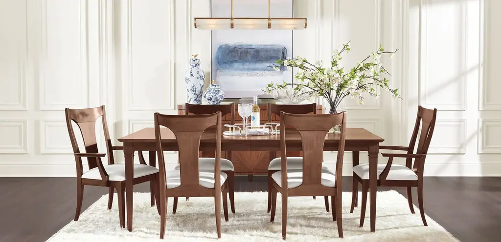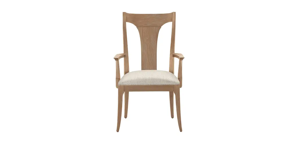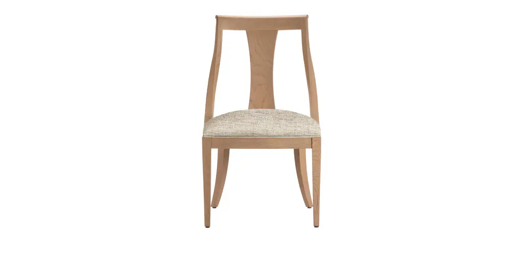 An American woodworking original, the splat-back dining chair, gets a modern, transitional makeover. Artemis has a reshaped back that features a subtle but elegant curve, a thoughtful update that brings this side chair into the formal dining realm while keeping its farmhouse roots. Handcrafted in our North American workshops with the wood finish and fabric of your choice.
