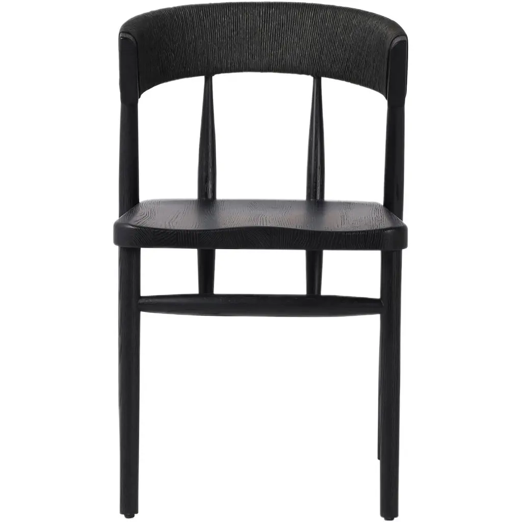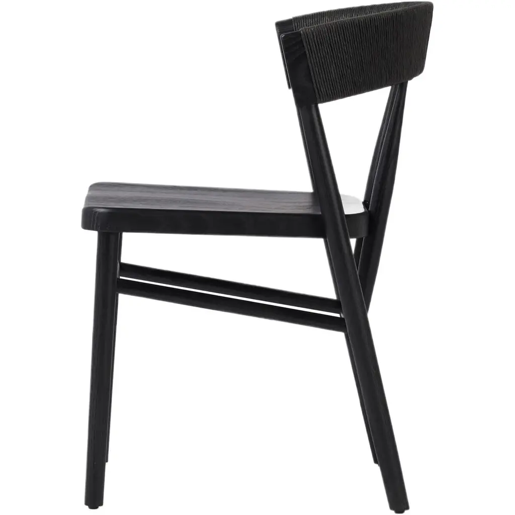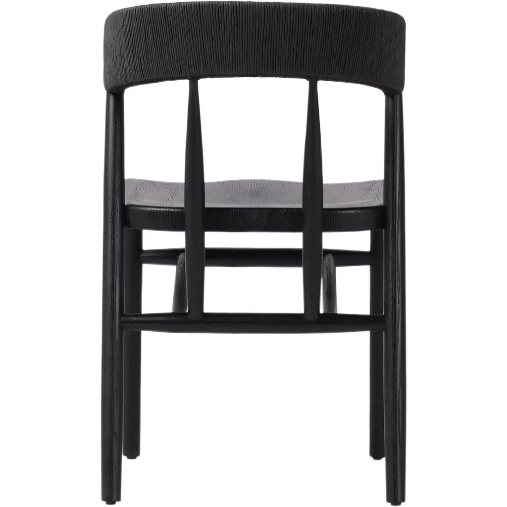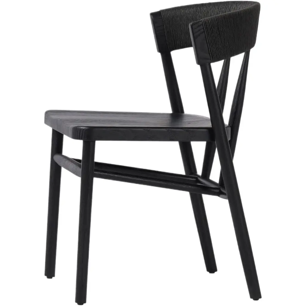 Paper rush wrapped around the top of the seat back provide a textural complement to this dining chair's oak frame. A contemporary tribute to the classic Windsor chair, it has a seat that is gently curved for added comfort.