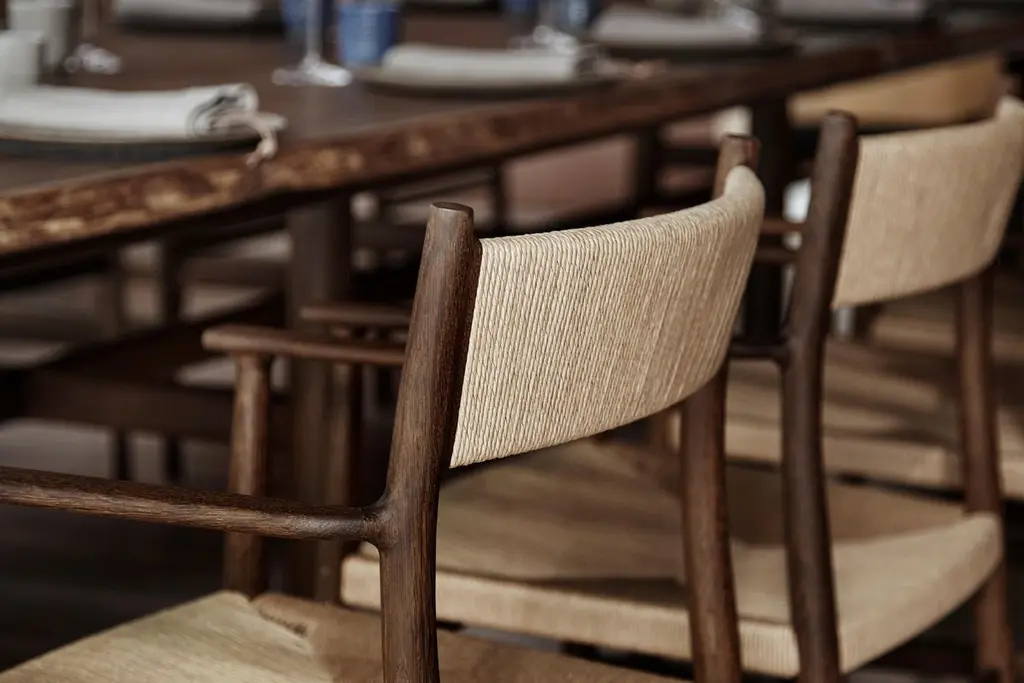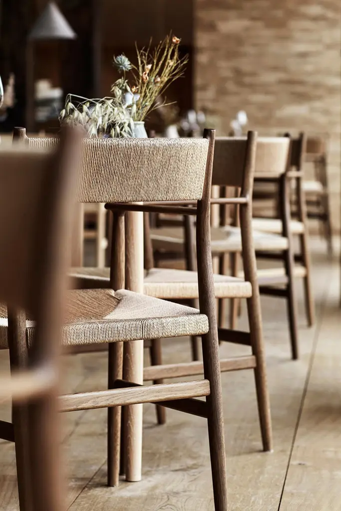 The award-winning ARV chair draws on the classic virtues of Danish Modern design with timeless qualities, yet it has the spirit of a new generation.The conceptual design feature is a "branch" formation that organically connect the different parts - like branches growing from a tree trunk. Head chef and founder of the world-renowned Noma, René Redzepi, enlisted David Thulstrup to design a home for Noma, along with a series of furniture pieces. David collaborated with Brdr. Krüger to create a furniture collection that complements the spirit of the space.The chair, which has high armrests, has a hand-woven cord seat. The backrest is sculpted to form a fluid curve designed to support natural human movement and provide optimal seating comfort. Meanwhile the back leg of the chair has a gentle curve that smoothly connects to the backrest and armrest with delicate and precise joinery.Oiled Fumed Oak, PapercordWeaved Seat, Weaved BackDesignerDavid ThulstrupDavid Thulstrup is an architect and designer with a refined yet diverse approach to interiors and architecture intertwining classic aesthetics with a modern design language. He is the founder and creative director of Studio David Thulstrup in Copenhagen. David won international acclaim and multiple awards for the interiors of the two Michelin-starred Noma restaurant in Copenhagen.