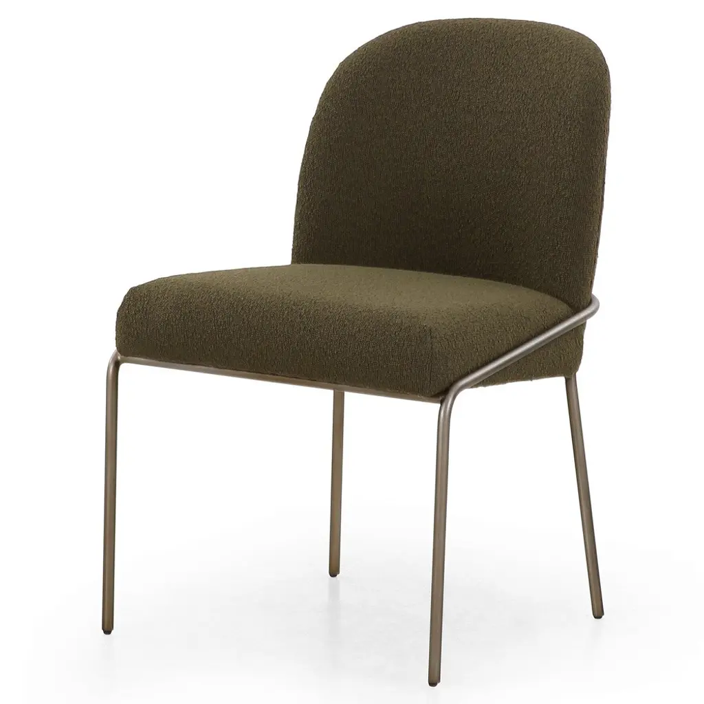 Astrid Industrial Loft Green Boucle Performance Iron Dining Side Chair