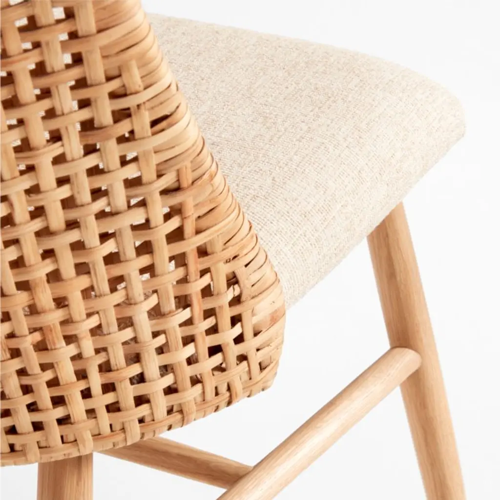 Astrid pulls up to the table with a casual, coastal aesthetic that suits leisurely meals and laid-back gatherings. Woven rattan curves a comfortable back, the open weave creating an airy look. Linen-like performance fabric in a natural flax hue covers the well-cushioned seat and allows for worry-free entertaining. Standing on tapered legs of sustainable oak, our Astrid upholstered rattan dining chair looks great from all angles.By choosing FSC ®-certified furniture, you are supporting responsible management of the world's forests.