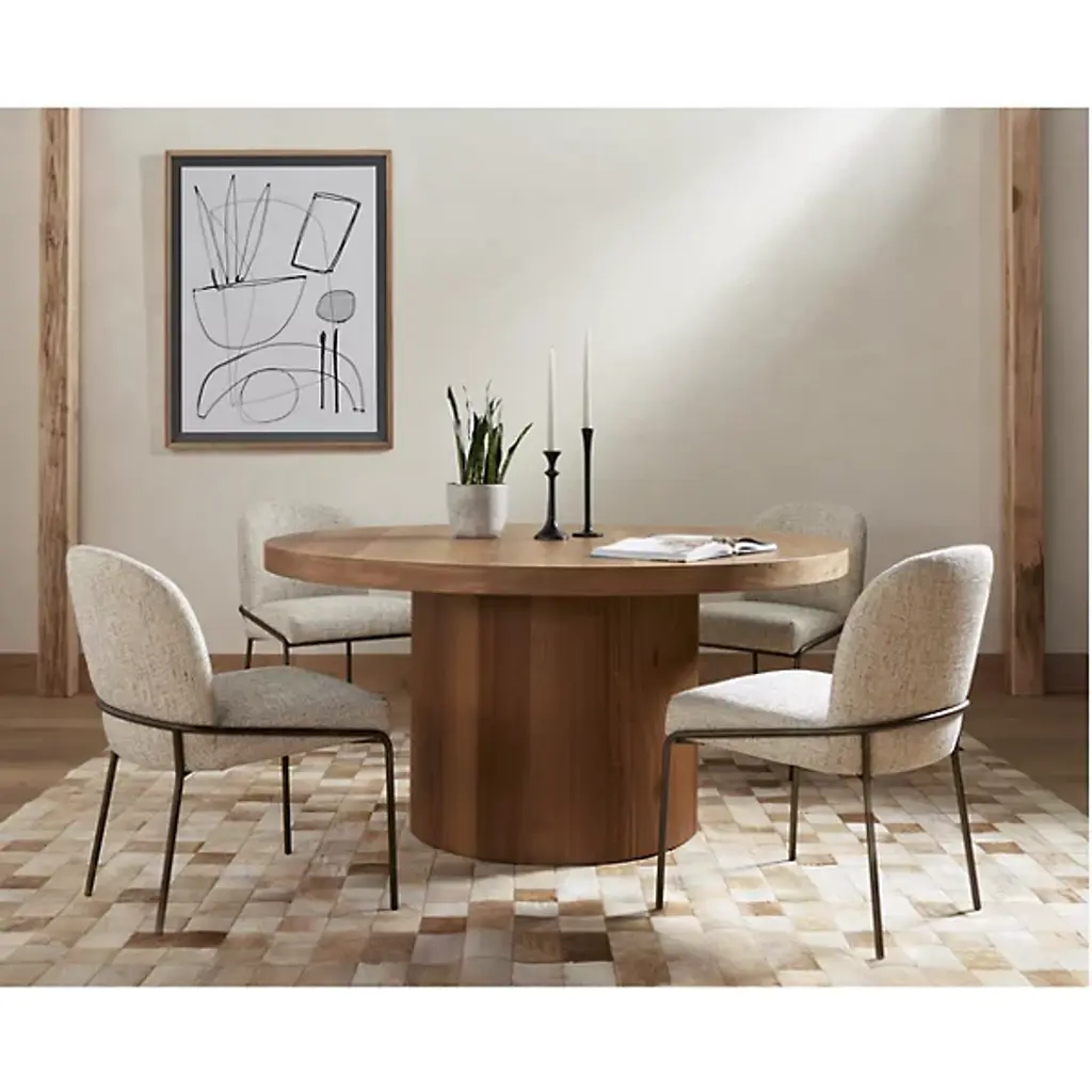 The Astrud Dining Chair from Four Hands reimagines the timeless flip top table and updates it with a touch of modernity. It is crafted out of solid ash with iron hardware, and its toasted finish exudes warmth, while inset hinges ensure seamless functionality. The legs showcase contemporary flair through intricate routing details, elevating this foundational piece to a new level of style and versatility.