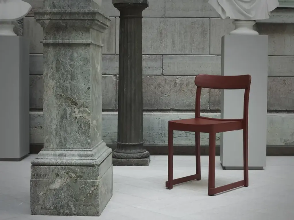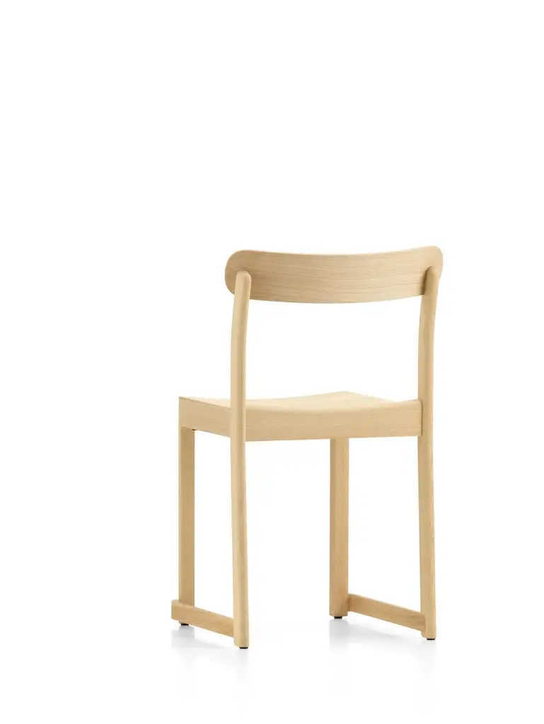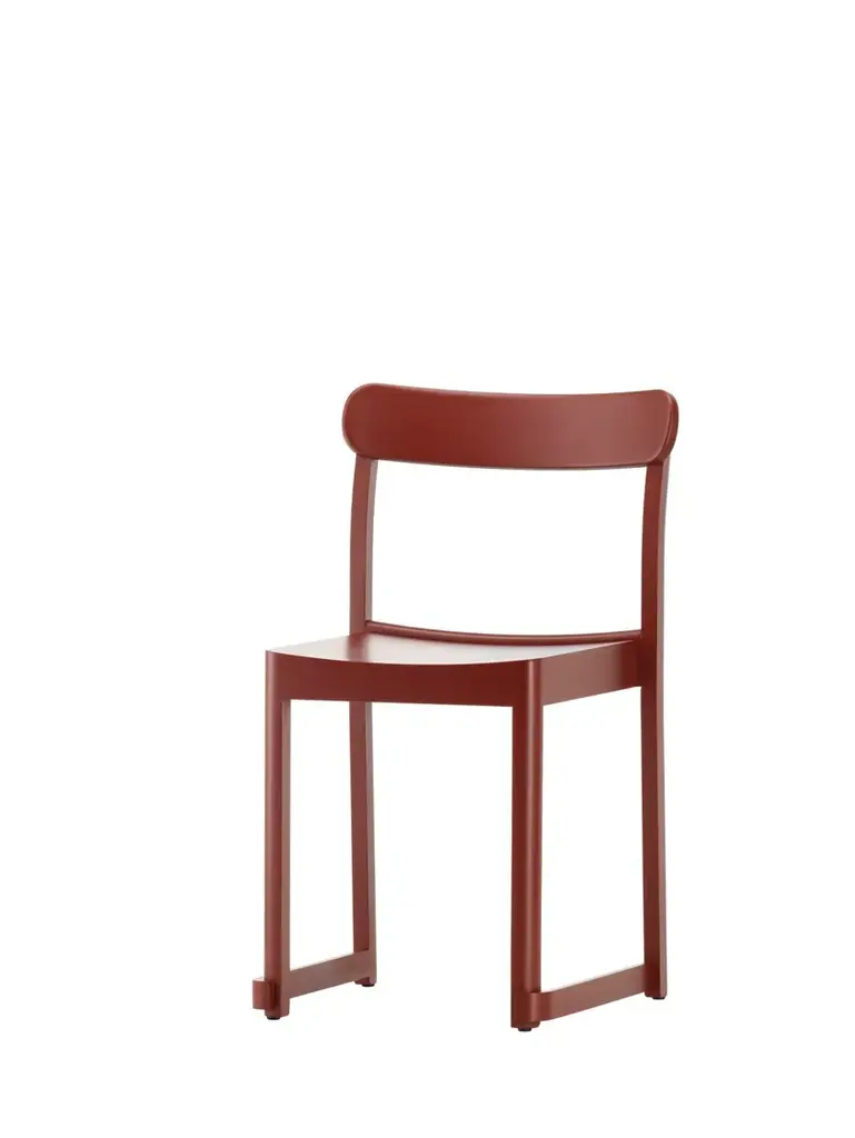 A universal wooden chair, Atelier Chair was designed for the new restaurant of the Nationalmuseum in Stockholm, which evokes an artist’s atelier. Commissioned by the museum as part of an initiative to foster contemporary Nordic design, Atelier Chair is compact, lightweight and stackable. Its slender proportions and geometric lines create an arresting aesthetic. Simple and direct, the chair possesses elegant details, such as the connecting bars which hug the front legs. The comfortable and versatile chair is equally at home at a desk, a dining table, a meeting room, a restaurant or in an auditorium. Atelier Chair is designed by Stockholm-based studio TAF Studio.Presenting itself in various colours and woodsFrame and back: Solid beechSeat: Beech veneerColours: black, dark red, green, clear Frame and back: Solid oak, clear lacquerSeat: Oak veneer, clear lacquerFrame and back: Solid ash, clear lacquerSeat: Ash veneer, clear lacquer