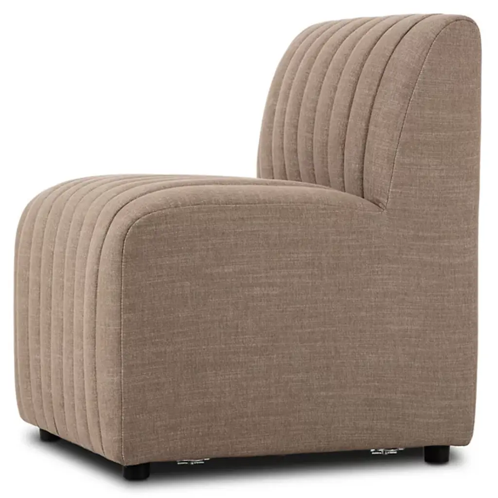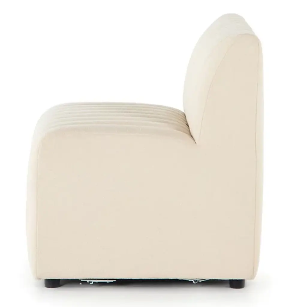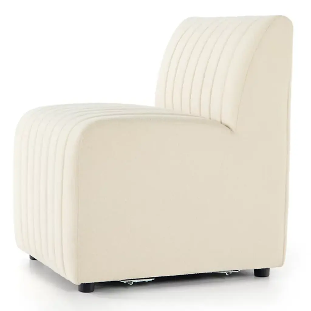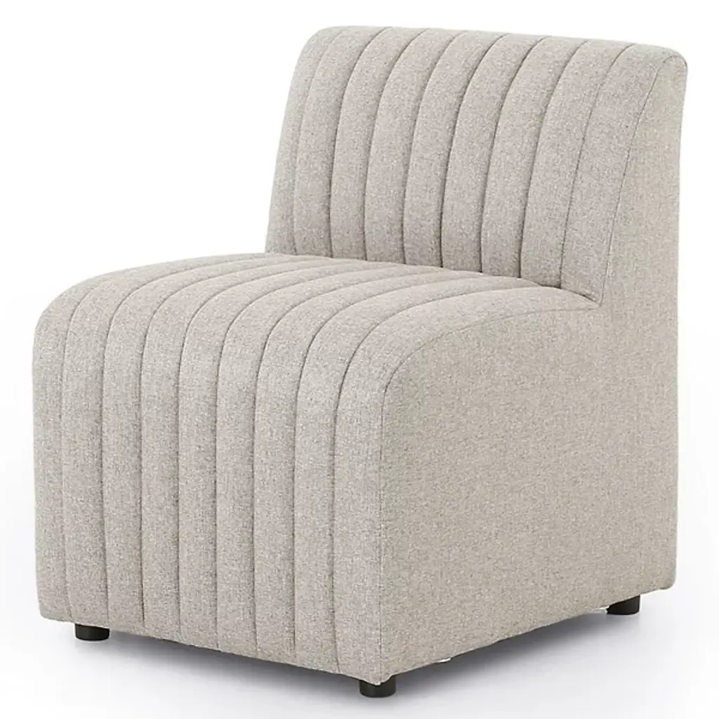 The Augustine Dining Chair from Four Hands combines precise vertical channeling with luxurious comfort. The high-performance fabric provides exceptional durability while maintaining a soft hand feel. Deep channels create dimensional interest across the backrest and seat, while polyurethane foam and polyester fiber filling ensure lasting support for extended dining experiences. The distinctive vertical lines flow continuously from top to bottom, creating a unified design statement.