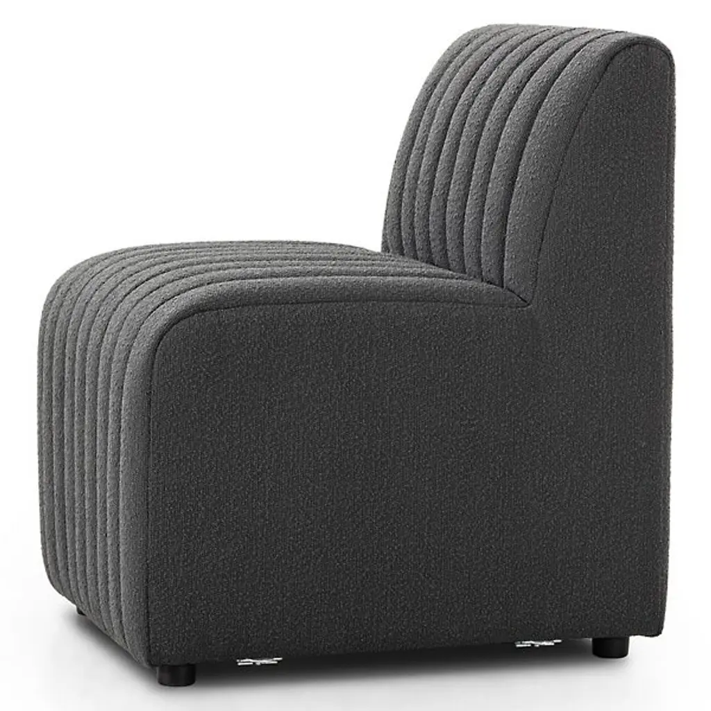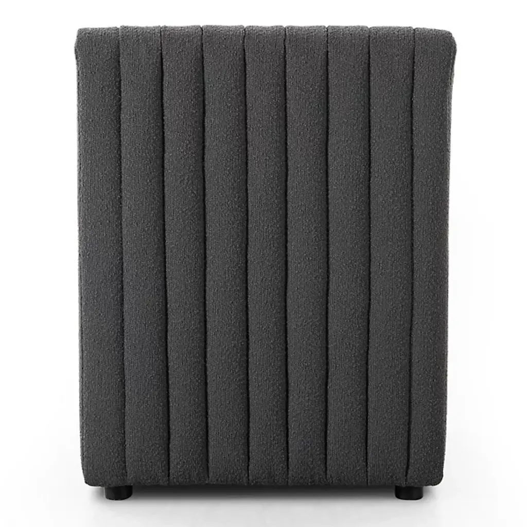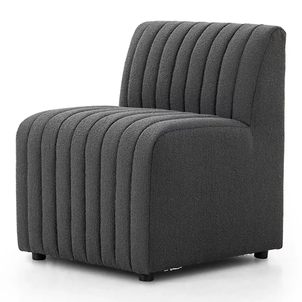 The Augustine Dining Chair from Four Hands combines precise vertical channeling with luxurious comfort. The high-performance fabric provides exceptional durability while maintaining a soft hand feel. Deep channels create dimensional interest across the backrest and seat, while polyurethane foam and polyester fiber filling ensure lasting support for extended dining experiences. The distinctive vertical lines flow continuously from top to bottom, creating a unified design statement.