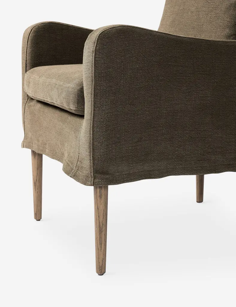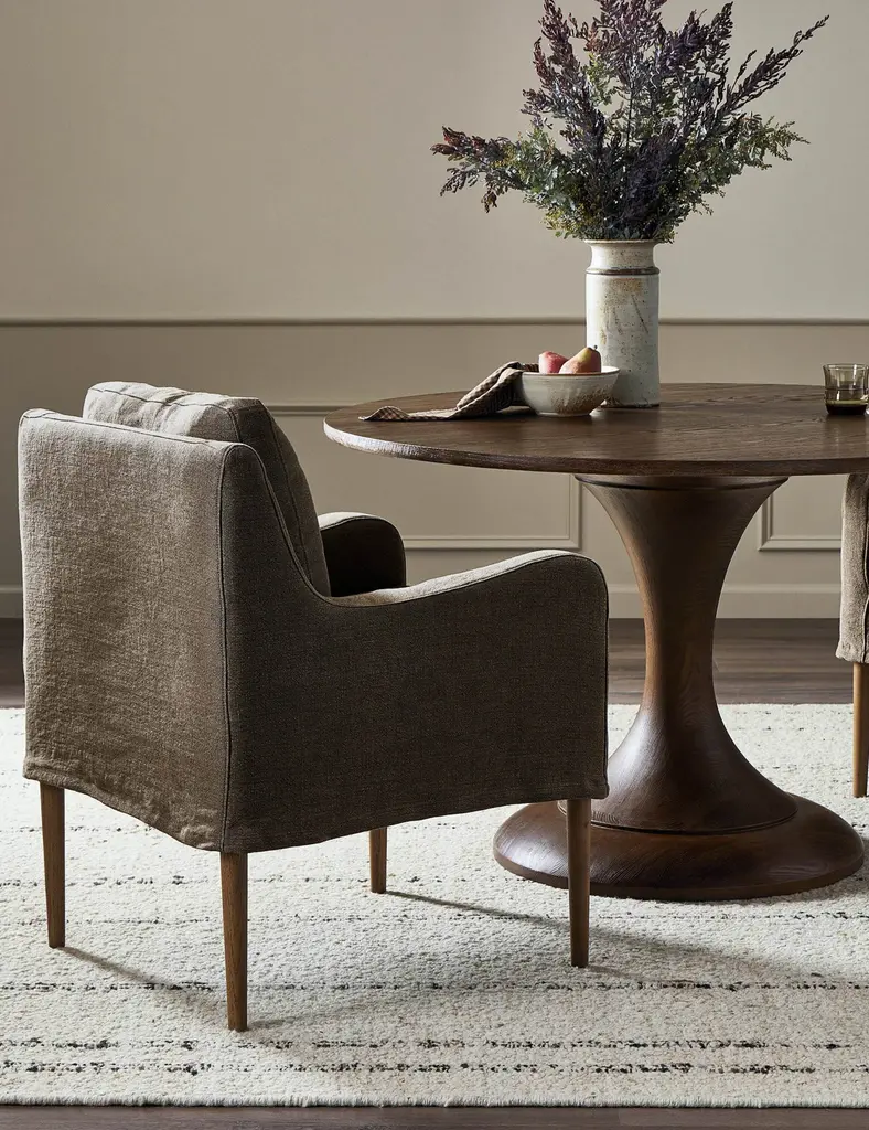 Four Hands brings their exceptional craftsmanship to a timeless collection rooted in Amber Lewis' perennial California style. Sloping track arms lend refined comfort to this wingback dining chair. A perfect choice for a casual yet elegant dining room, this dining room chair delivers the best of style and comfort.