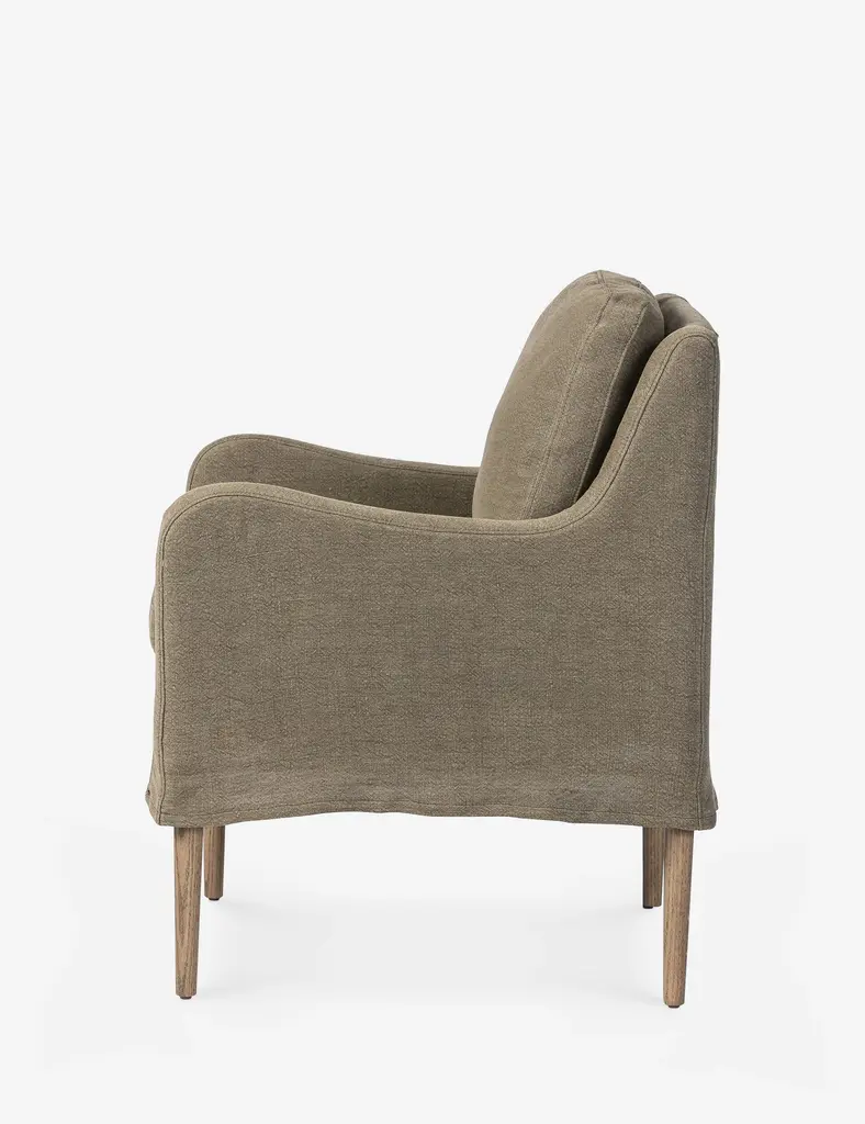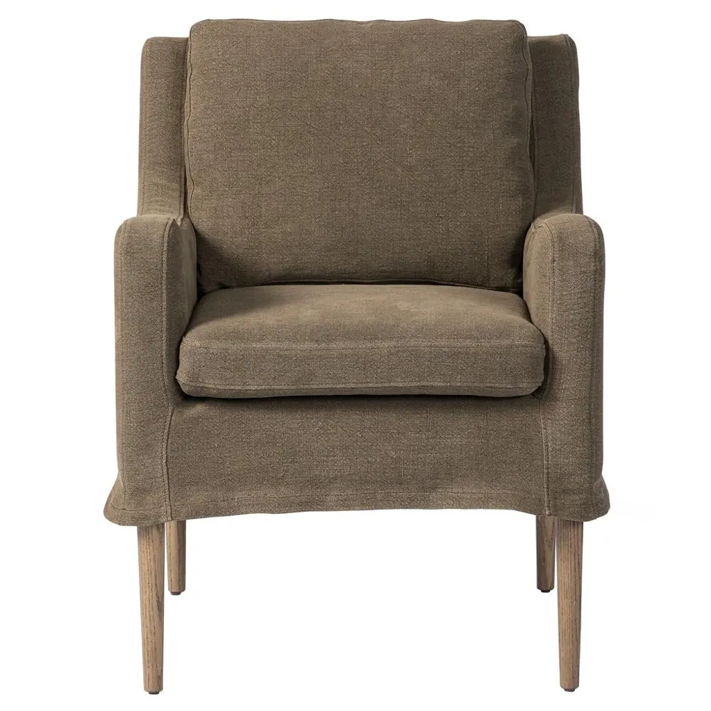 Four Hands brings their exceptional craftsmanship to a timeless collection rooted in Amber Lewis' perennial California style. Sloping track arms lend refined comfort to this wingback dining chair. A perfect choice for a casual yet elegant dining room, this dining room chair delivers the best of style and comfort.