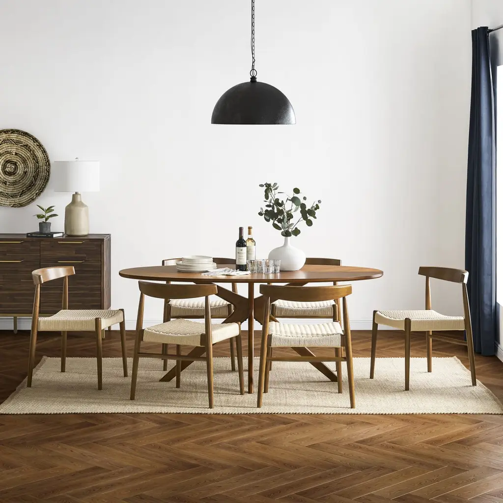 Serve up mid-century modern charm alongside your daily meals with Austen, an elegant dining chair with a refined silhouette.
