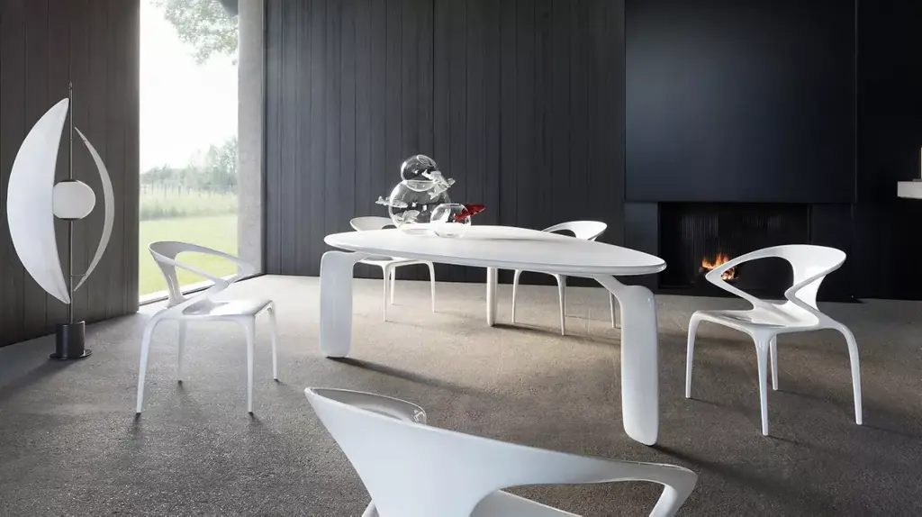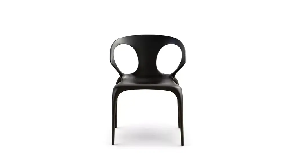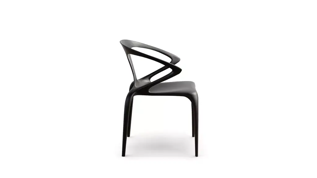 The Ava chair was inspired by combining the idea of mythical dragons and the design of Ming dynasty armchairs with high-tech design. It was created by Song Wen Zhong, a young Chinese designer who won the Roche Bobois Design Award based on the theme of 'Nature, universal link between East and West'. Light and stackable, it is available in several transparent, opaque, glossy and matte shades. This matte version is made by injecting polypropylene from recycled industrial waste; it therefore does not use any new petroleum products during the manufacturing process.