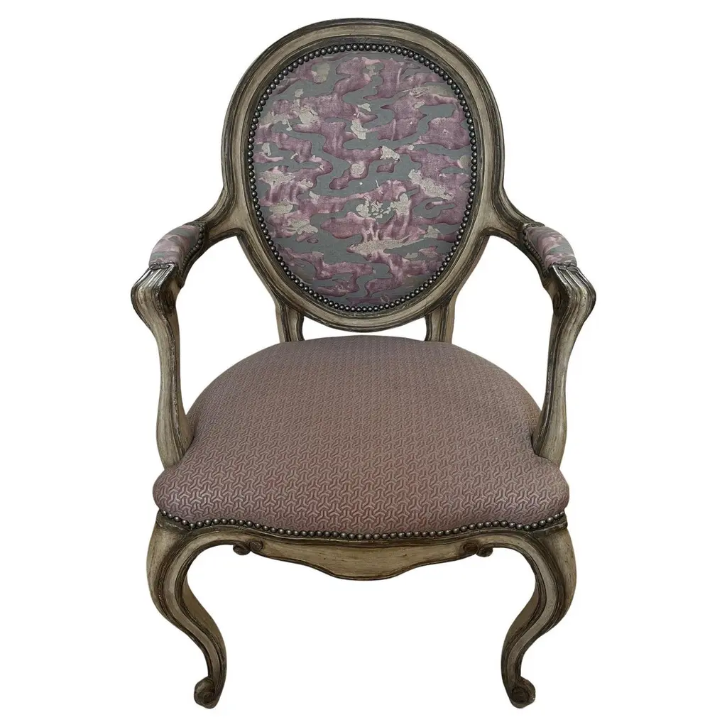 With its numerous carvings and mahogany finish, the Avignon chair will be the perfect complement to any dining table. (Fabric subject to change) W010