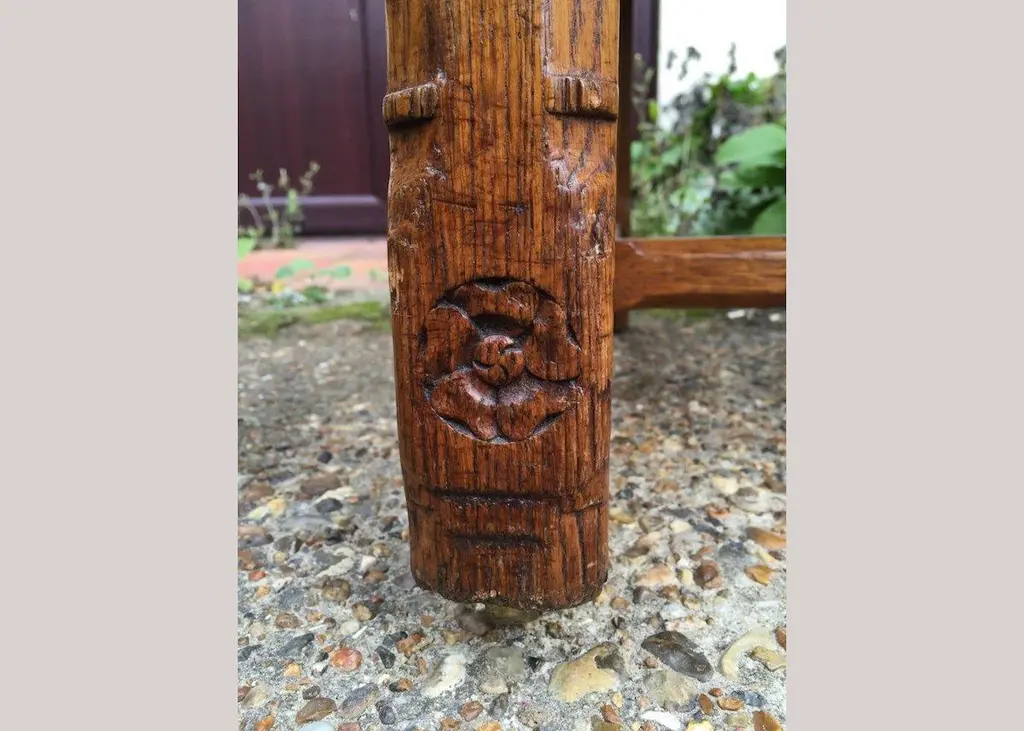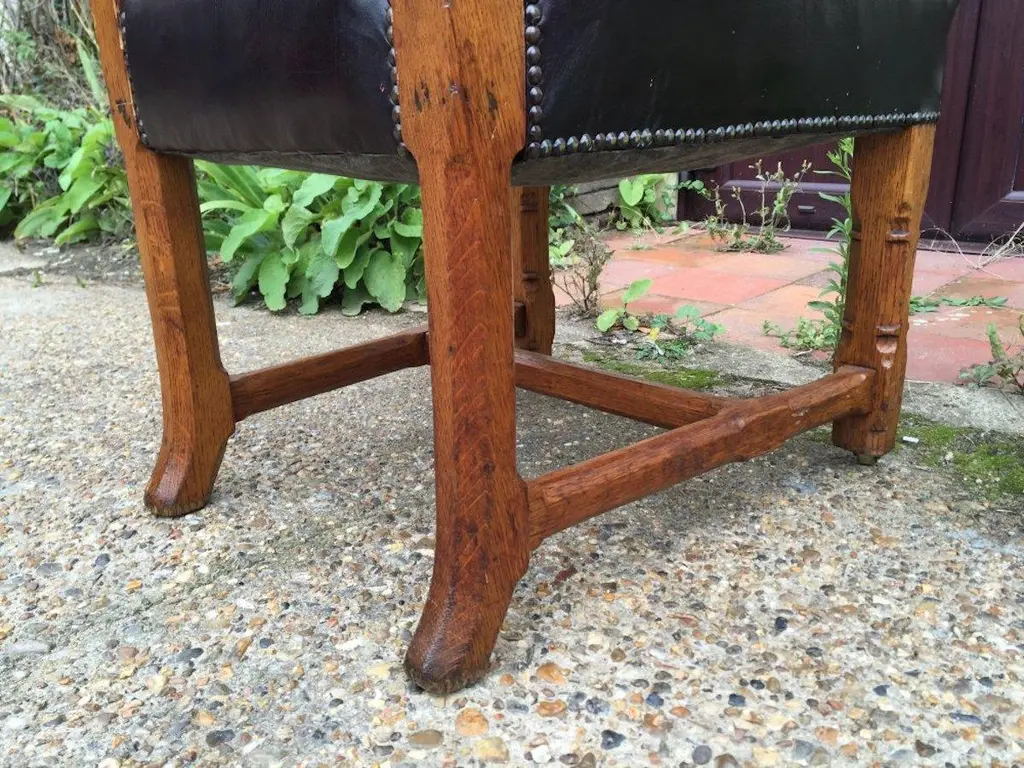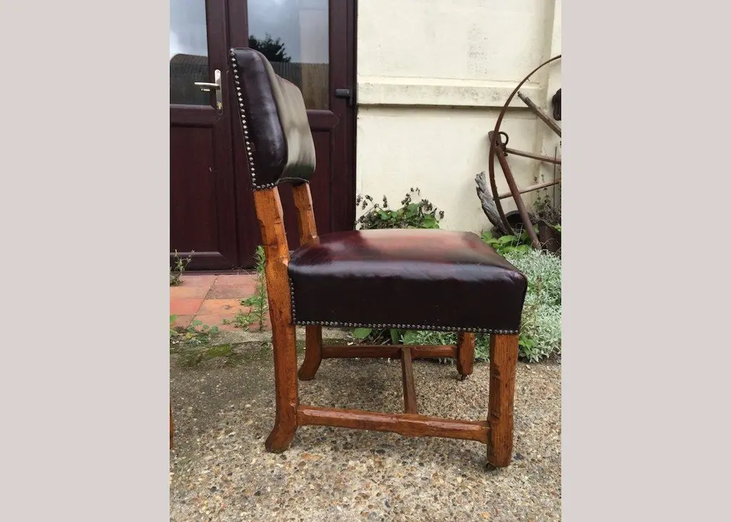 A.W.N. Pugin. A unusually large pair of Gothic Revival oak dining chairs with carved florets to the lower front legs and chamfered details to the show wood, probably designed for the Palace of Westminster.