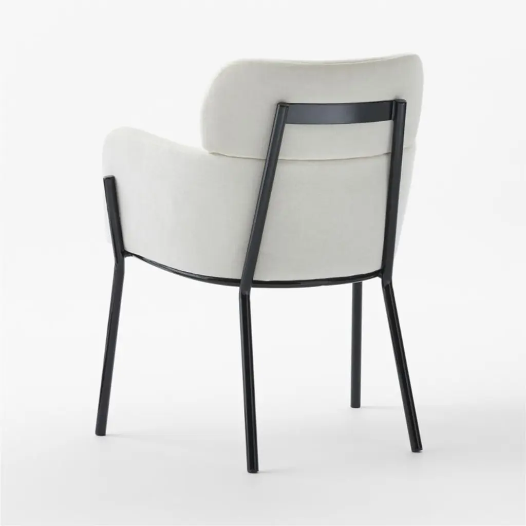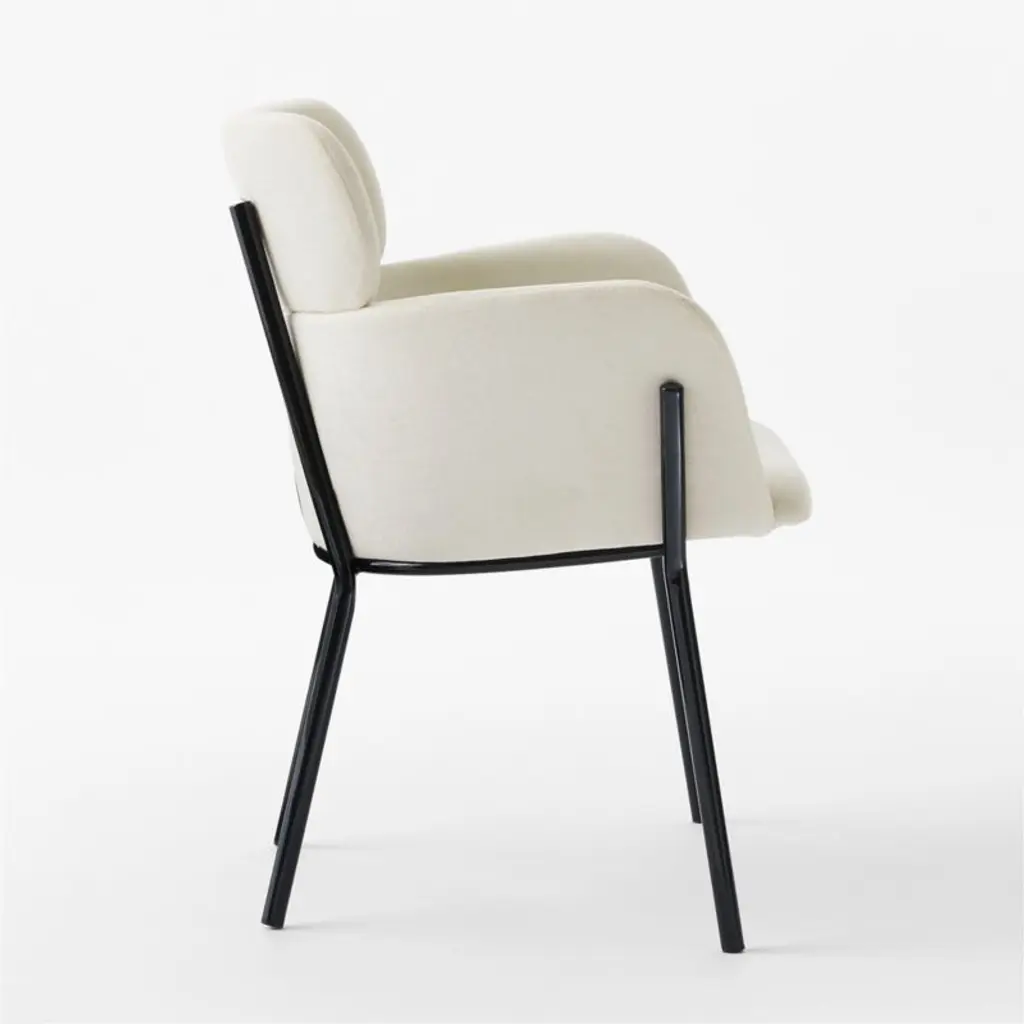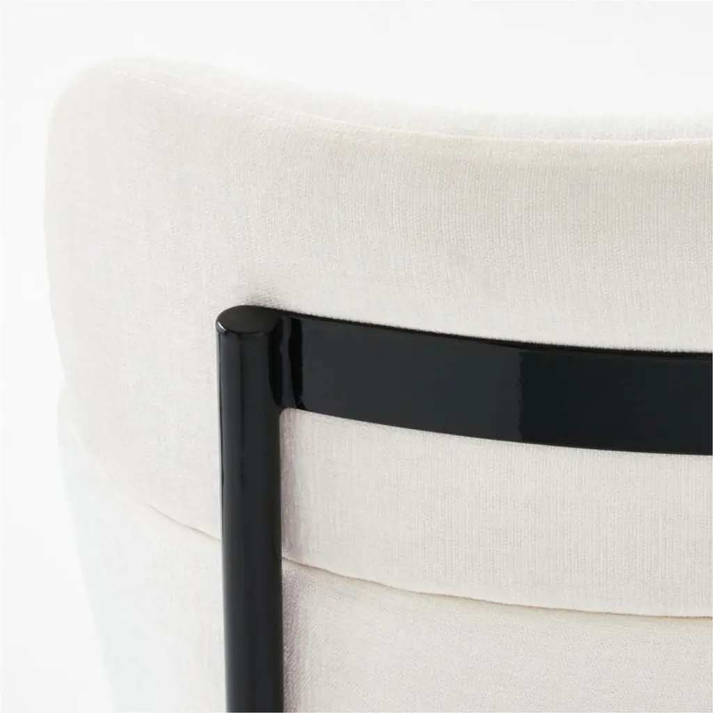 Designed by Caleb Zipperer and curved with two tiers of comfort, cream dining chairs invite guests to stay a while. Clad in a cream performance fabric, the chairs sit plush with the bottom tier sized just right for arm resting. CB2 exclusive.