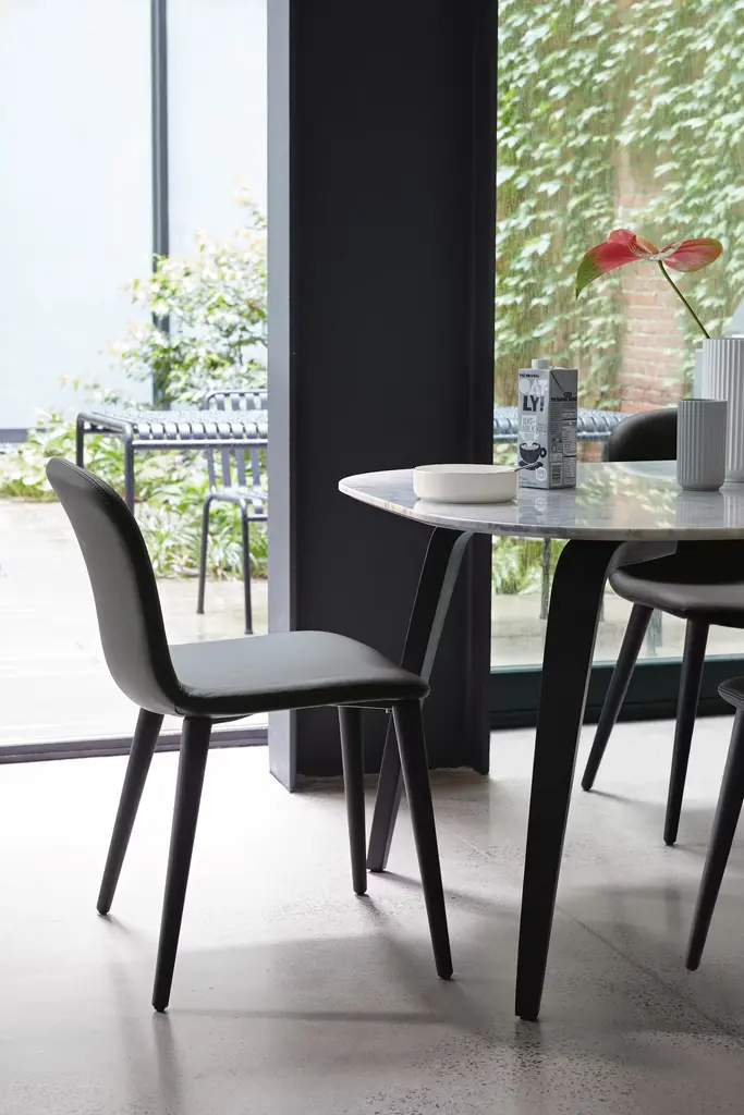 “In Italy, we love to stay at the table for a long time to eat, drink and relax," says Omar De Biaggio. “So when I design a chair, I focus on comfort and helping the sitter stay relaxed. It's not just to sit in front of a dish of spaghetti." With this in mind, Omar named his Bacco Collection (2013) after Bacchus (Bacco in Italian), the Roman god of wine. “This is a multipurpose, modern and elegant chair," he says, “with soft lines and, above all, a cozy shape, thanks to 3-D molding technology." Made in Italy.
