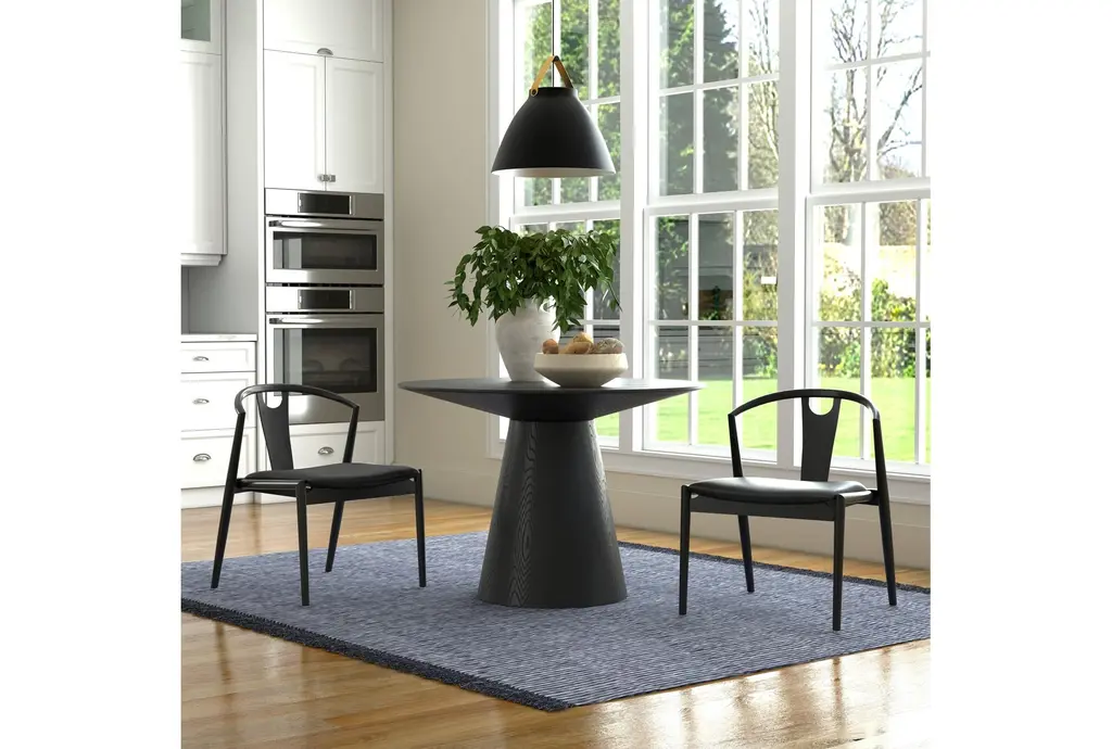 The Ballard Black Faux Leather Curved Back Dining Chair is the perfect addition to your dining room or kitchen. This armless chair combines style and comfort with its curved back and sleek design. The black leatherette material provides a sophisticated look, making it a versatile piece for any dining space.