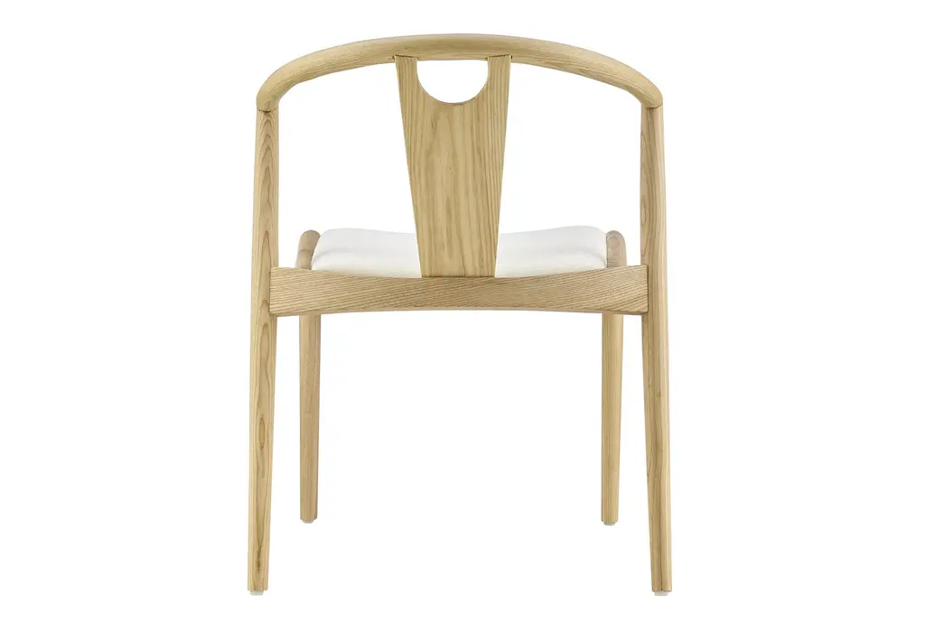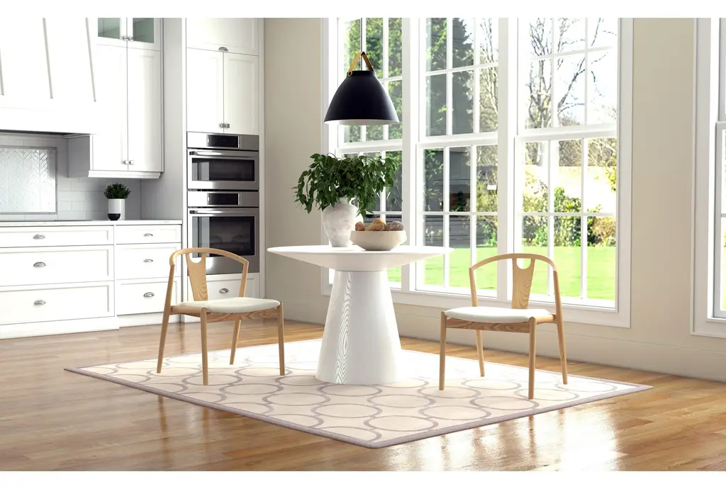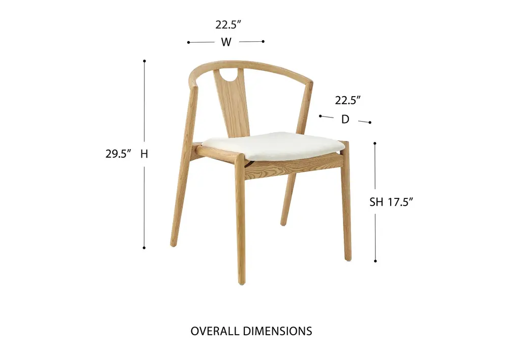 The Ballard White Faux Leather Fabric Curved Back Dining Chair is a stylish addition to any dining room or kitchen. Its armless design and curved back provide a modern look while ensuring comfort. The chair features a soft white faux leather fabric that complements its natural wood frame.