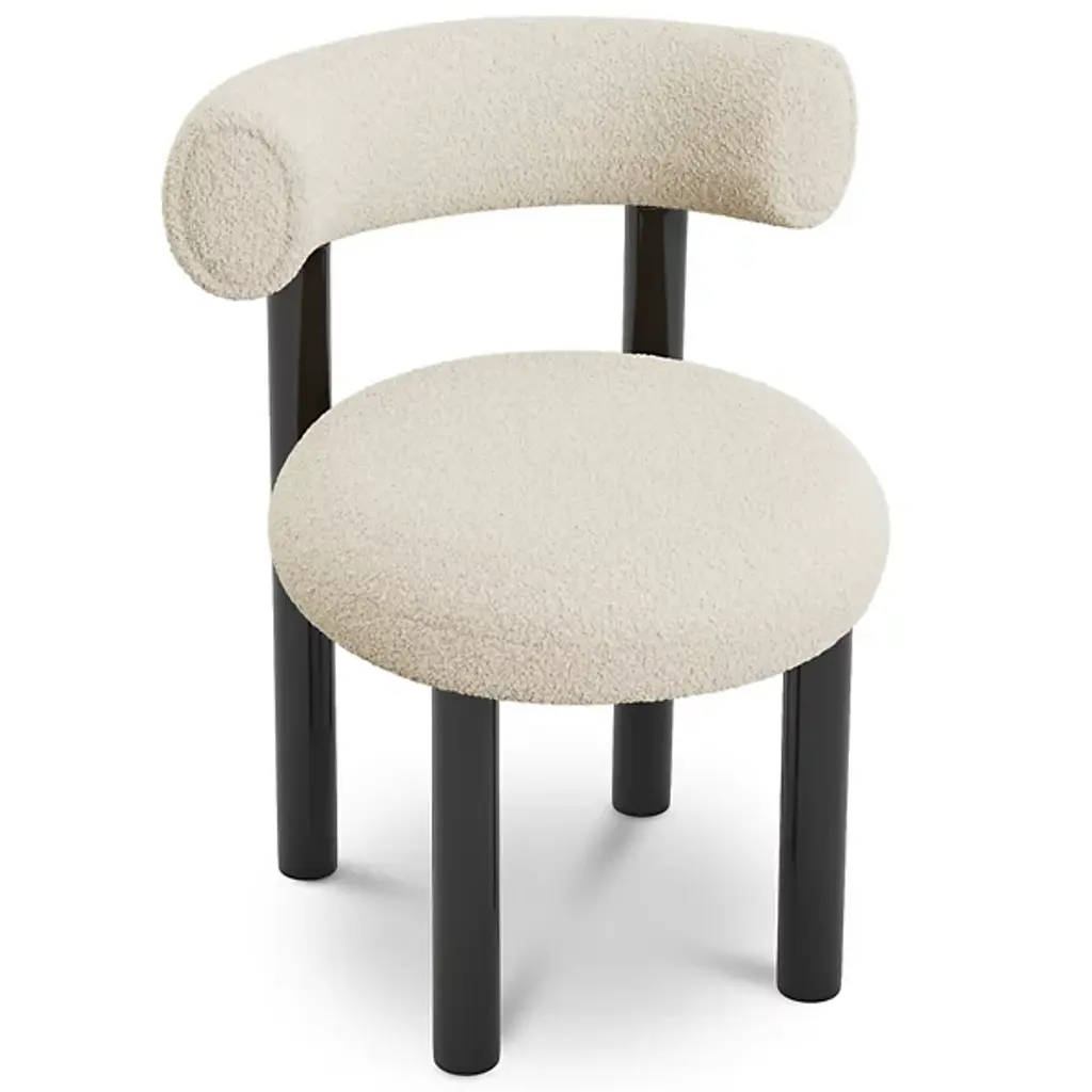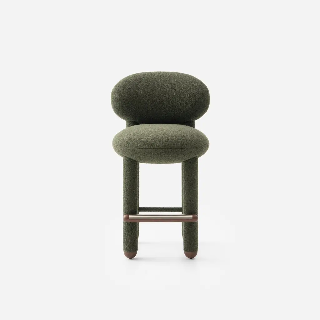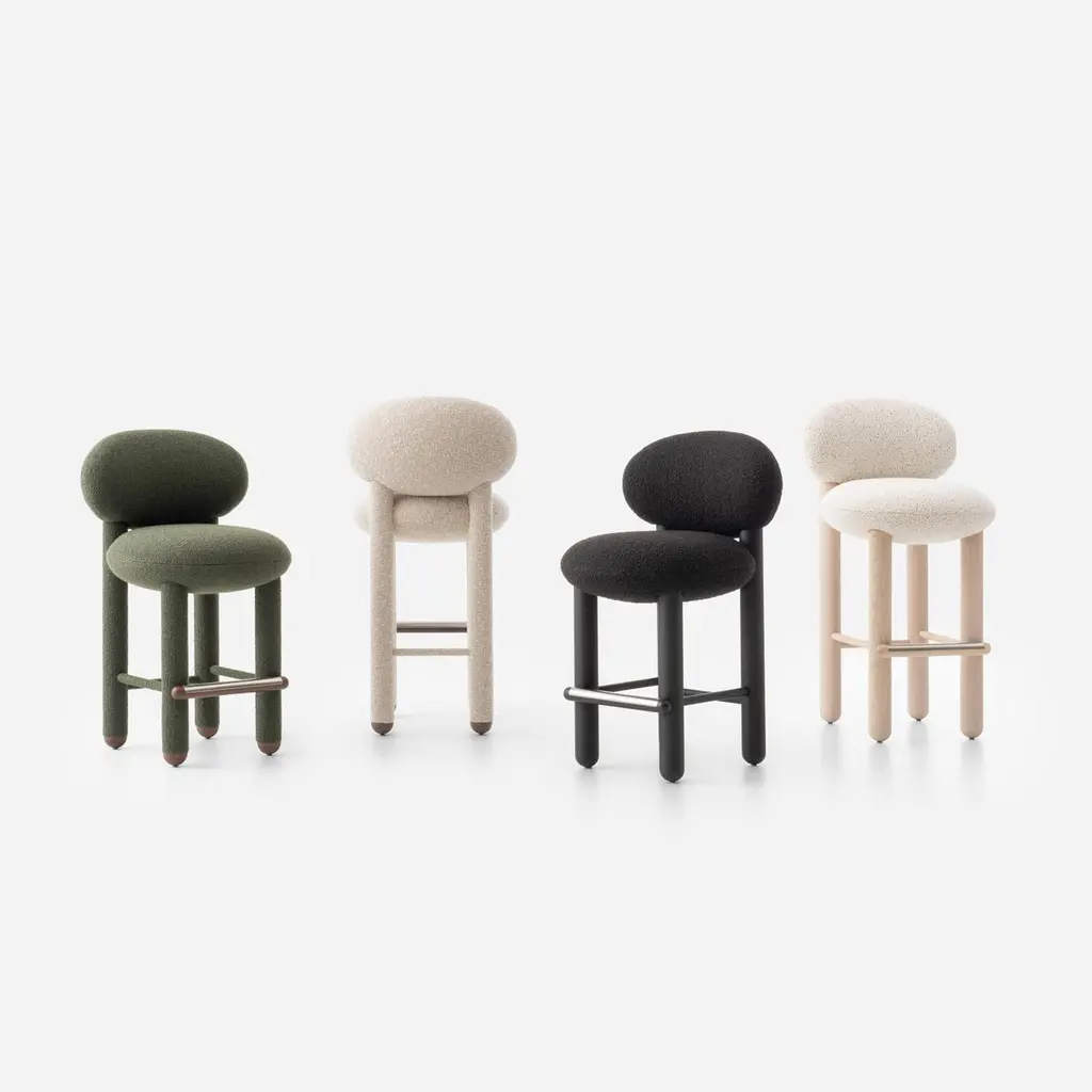 Baloo Boucle Counter Chair Flock CS2 by NOOMDimensions: W 55 x D 63 x H 97 cm Materials: Ashwood, plywood, moulded foam, textile.Weight: 20 kgAlso available in other materials and colors.The design bar chair Flock is not just a modern chair; it's a masterpiece that seamlessly blends timeless elegance with comfort and meticulous craftsmanship. This bar height chair features a deep, soft seat and a curved supportive back, making it a striking accent chair for private and commercial interiors. With a wide selection of premium fabrics and customisable wooden or upholstered legs, the Flock counter stool with back is designed to complement any space. Flock bar chairs are an extension of the brand's existing Flock collection, which previously featured lounge chairs with ottomans and dining chairs.About, NOOM is a leading design brand from Ukraine. Working at the intersection of art and craftsmanship, driven by a curiosity for testing new materials, finishes, and techniques, NOOM produces eye-catching furniture, lighting, mirrors and décor for private and commercial interiors, including cutting-edge collectable design pieces. Balancing between expression and function, NOOM is a place where design meets art. The company was founded in 2017 by industrial designer Kateryna Sokolova, with designer, and entrepreneur Arkadii Vartanov. Arkadii and Kateryna teamed up to bring together the very best of design, materials, and craftsmanship. Combining traditional and modern manufacturing technologies, NOOM aims to design functional and striking products that are "built to last". "Our objects lie between design, art, and craftsmanship," said the designers. "Managing the manufacturing of our creations, we oversee the entire production process and pay exceptional attention to every detail in each piece”.