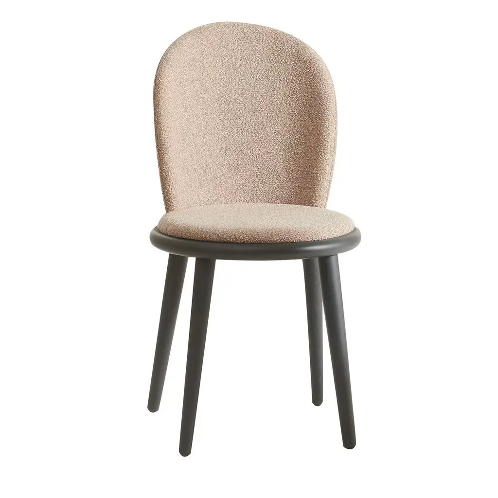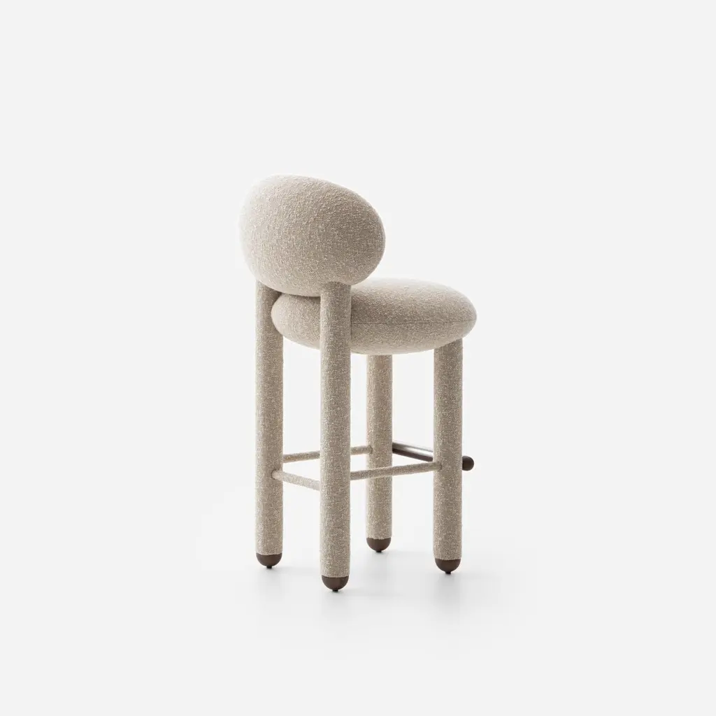 Baloo Boucle Flock Bar Chair CS1 by NOOMDimensions: W 55 x D 63 x H 107 cm Materials: Ashwood, plywood, moulded foam, textile.Weight: 21 kgAlso available in other materials and colors.The design bar chair Flock is not just a modern chair; it's a masterpiece that seamlessly blends timeless elegance with comfort and meticulous craftsmanship. This bar height chair features a deep, soft seat and a curved supportive back, making it a striking accent chair for private and commercial interiors. With a wide selection of premium fabrics and customisable wooden or upholstered legs, the Flock counter stool with back is designed to complement any space. Flock bar chairs are an extension of the brand's existing Flock collection, which previously featured lounge chairs with ottomans and dining chairs.About, NOOM is a leading design brand from Ukraine. Working at the intersection of art and craftsmanship, driven by a curiosity for testing new materials, finishes, and techniques, NOOM produces eye-catching furniture, lighting, mirrors and décor for private and commercial interiors, including cutting-edge collectable design pieces. Balancing between expression and function, NOOM is a place where design meets art. The company was founded in 2017 by industrial designer Kateryna Sokolova, with designer, and entrepreneur Arkadii Vartanov. Arkadii and Kateryna teamed up to bring together the very best of design, materials, and craftsmanship. Combining traditional and modern manufacturing technologies, NOOM aims to design functional and striking products that are "built to last". "Our objects lie between design, art, and craftsmanship," said the designers. "Managing the manufacturing of our creations, we oversee the entire production process and pay exceptional attention to every detail in each piece”.