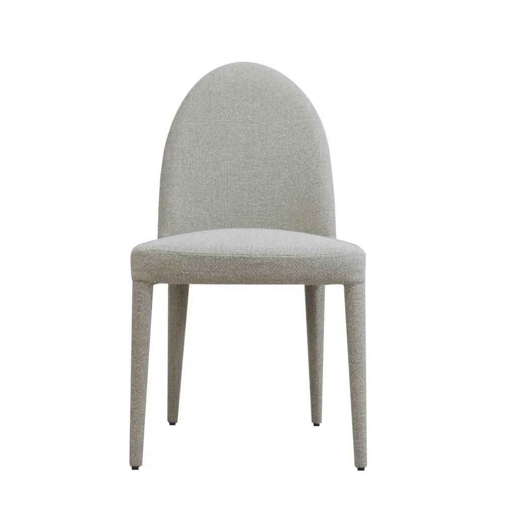 Timeless charm and simple elegance set this chair apart. Entirely upholstered, this design is a perfect balance of modern materials and Classic shapes, featuring slender legs, rounded backrest, and a spacious square seat. Versatile and comfortable, this dining chair will complete a sophisticated but not overly formal dining room ensemble, adding a luxurious touch.