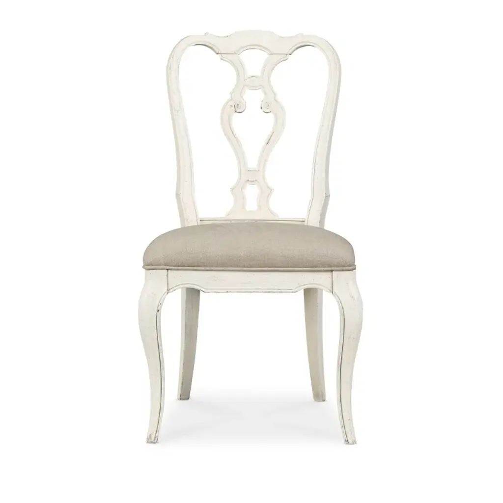 Our Barrington scroll side chair effortlessly combines traditional elegance and rustic hues. The upholstered seat and intricate scroll back make it a stylish place to enjoy meals and company.