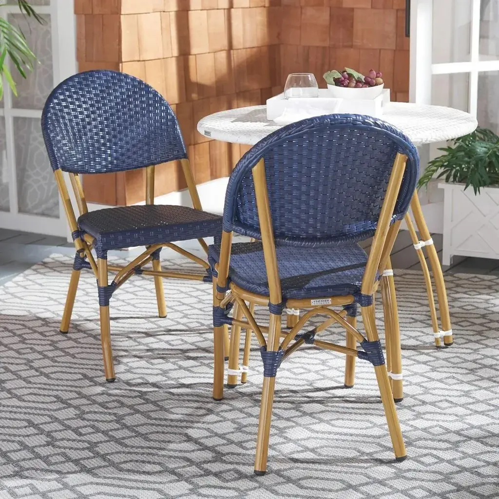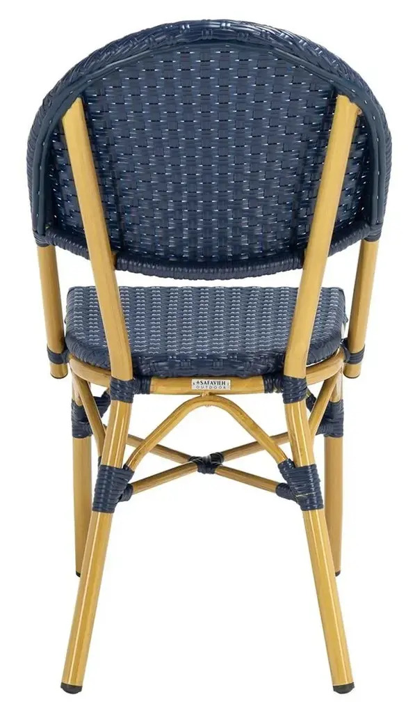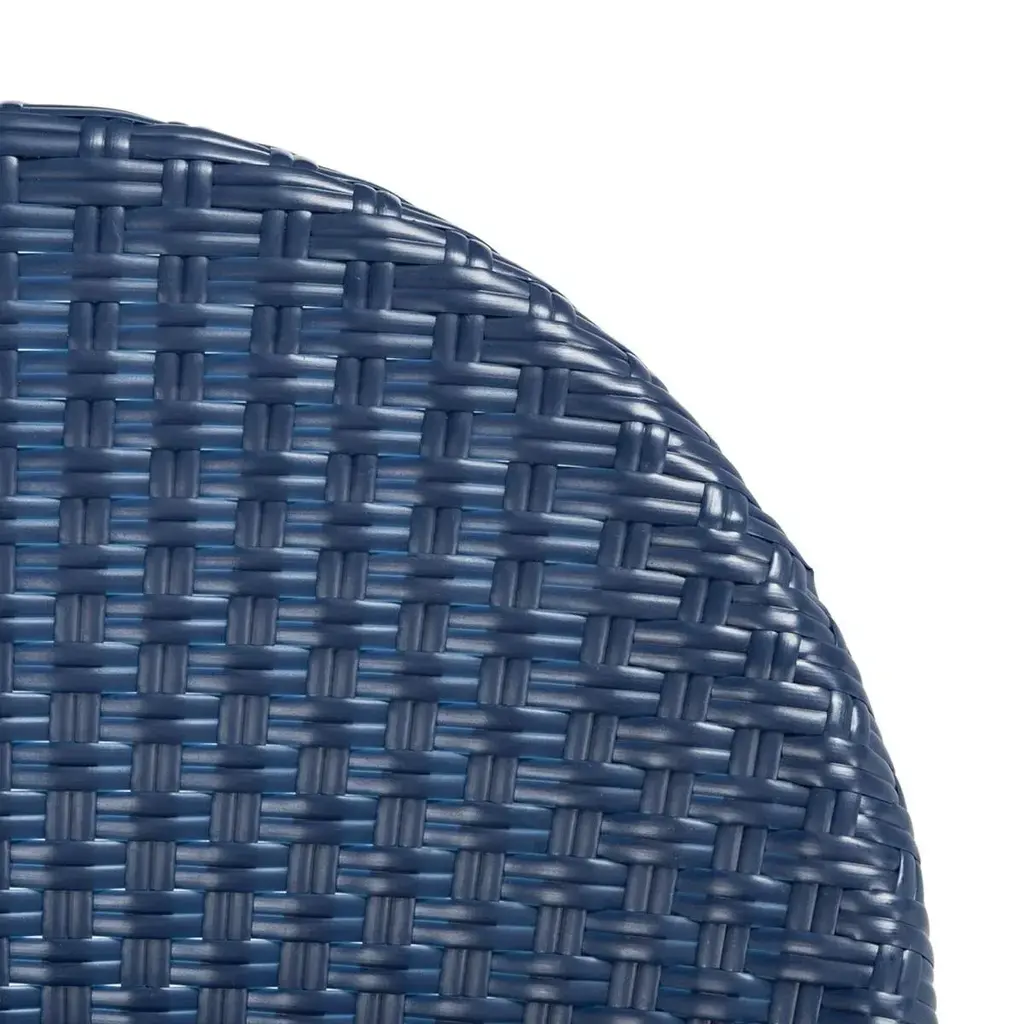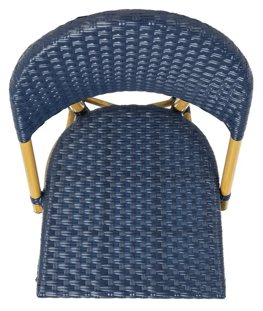 A stylish solution to extra guest seating, the Barrow Arm Chair is crafted for indoor outdoor use. Based on a timeless tropical design, with navy PE wicker and faux bamboo aluminum frame, this set of two Barrow chairs adds retro flair to the family room or patio. Care Instructions: Store outdoor furniture indoors or cover well when not in use. Remove wooden furniture from standing water. Dust regularly with small brush or vacuum. Spills should be taken care of immediately before they harden or stain with a slightly dampened sponge. Do not use bleach solutions.