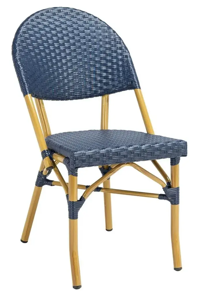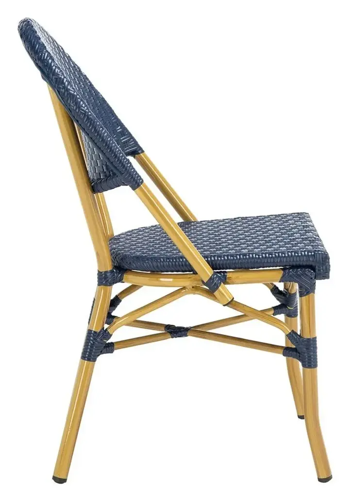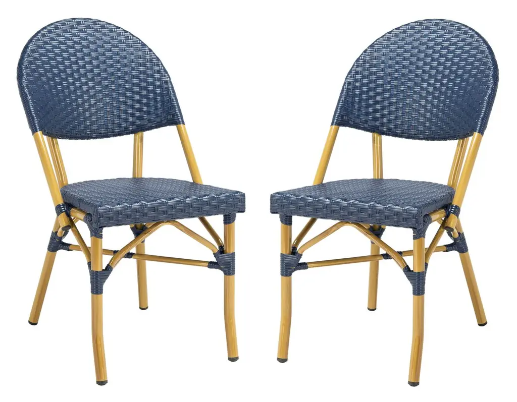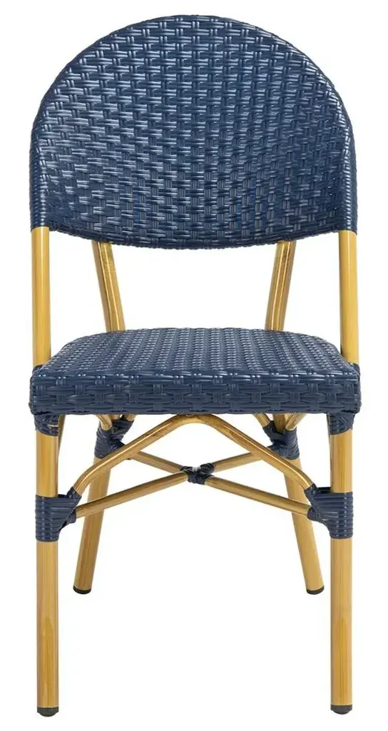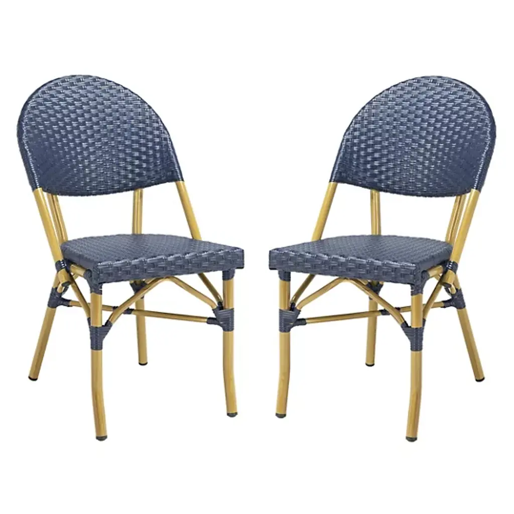 A stylish solution to extra guest seating, the Barrow Arm Chair is crafted for indoor outdoor use. Based on a timeless tropical design, with navy PE wicker and faux bamboo aluminum frame, this set of two Barrow chairs adds retro flair to the family room or patio. Care Instructions: Store outdoor furniture indoors or cover well when not in use. Remove wooden furniture from standing water. Dust regularly with small brush or vacuum. Spills should be taken care of immediately before they harden or stain with a slightly dampened sponge. Do not use bleach solutions.