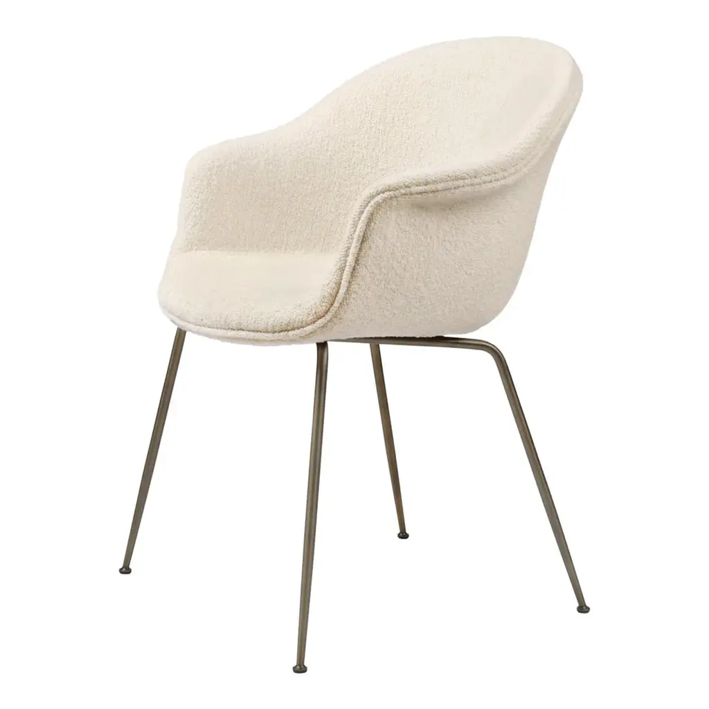 The Bat Dining Chair, designed by Danish-Italian design-duo GamFratesi, carries strong references to the interesting characteristics of bats, with its inviting, distinctive shell reminiscent of the shape of a batâ€s wingspan. Balancing between the traditional and surprising, the Bat Dining Chair is created with a Scandinavian approach to crafts, simplicity and functionalism while also carrying a strong embedded story and associations expressed in a minimalist idiom. The wide range of upholstery options and different bases makes the Bat Dining Chair fit perfectly into a variety of public and private contexts.