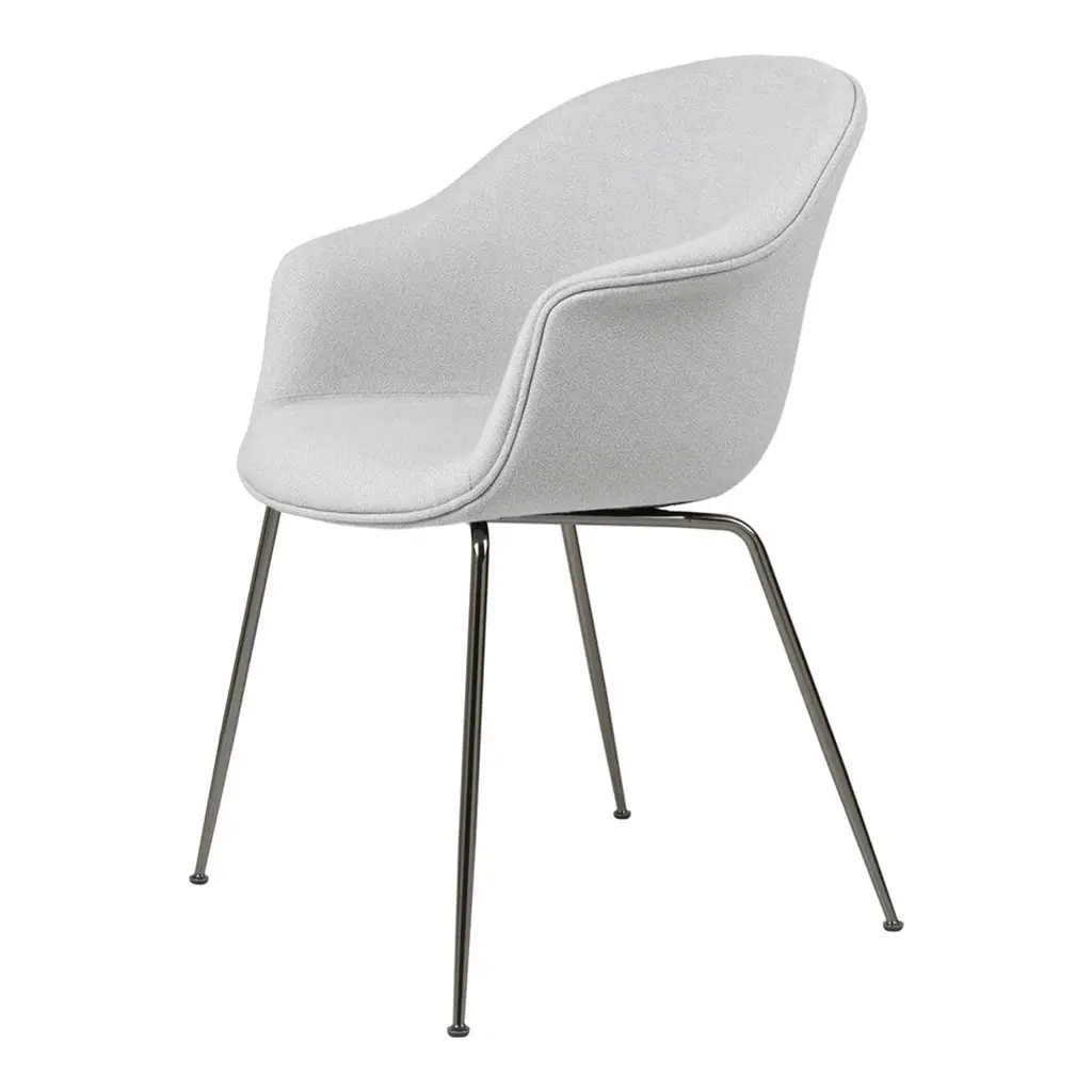 The Bat Dining Chair, designed by Danish-Italian design-duo GamFratesi, carries strong references to the interesting characteristics of bats, with its inviting, distinctive shell reminiscent of the shape of a batâ€s wingspan. Balancing between the traditional and surprising, the Bat Dining Chair is created with a Scandinavian approach to crafts, simplicity and functionalism while also carrying a strong embedded story and associations expressed in a minimalist idiom. The wide range of upholstery options and different bases makes the Bat Dining Chair fit perfectly into a variety of public and private contexts.