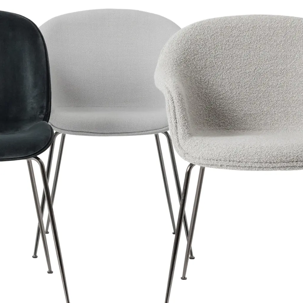 The Bat Dining Chair, designed by Danish-Italian design-duo GamFratesi, carries strong references to the interesting characteristics of bats, with its inviting, distinctive shell reminiscent of the shape of a batâ€s wingspan. Balancing between the traditional and surprising, the Bat Dining Chair is created with a Scandinavian approach to crafts, simplicity and functionalism while also carrying a strong embedded story and associations expressed in a minimalist idiom. The wide range of upholstery options and different bases makes the Bat Dining Chair fit perfectly into a variety of public and private contexts.