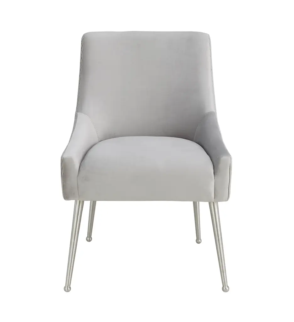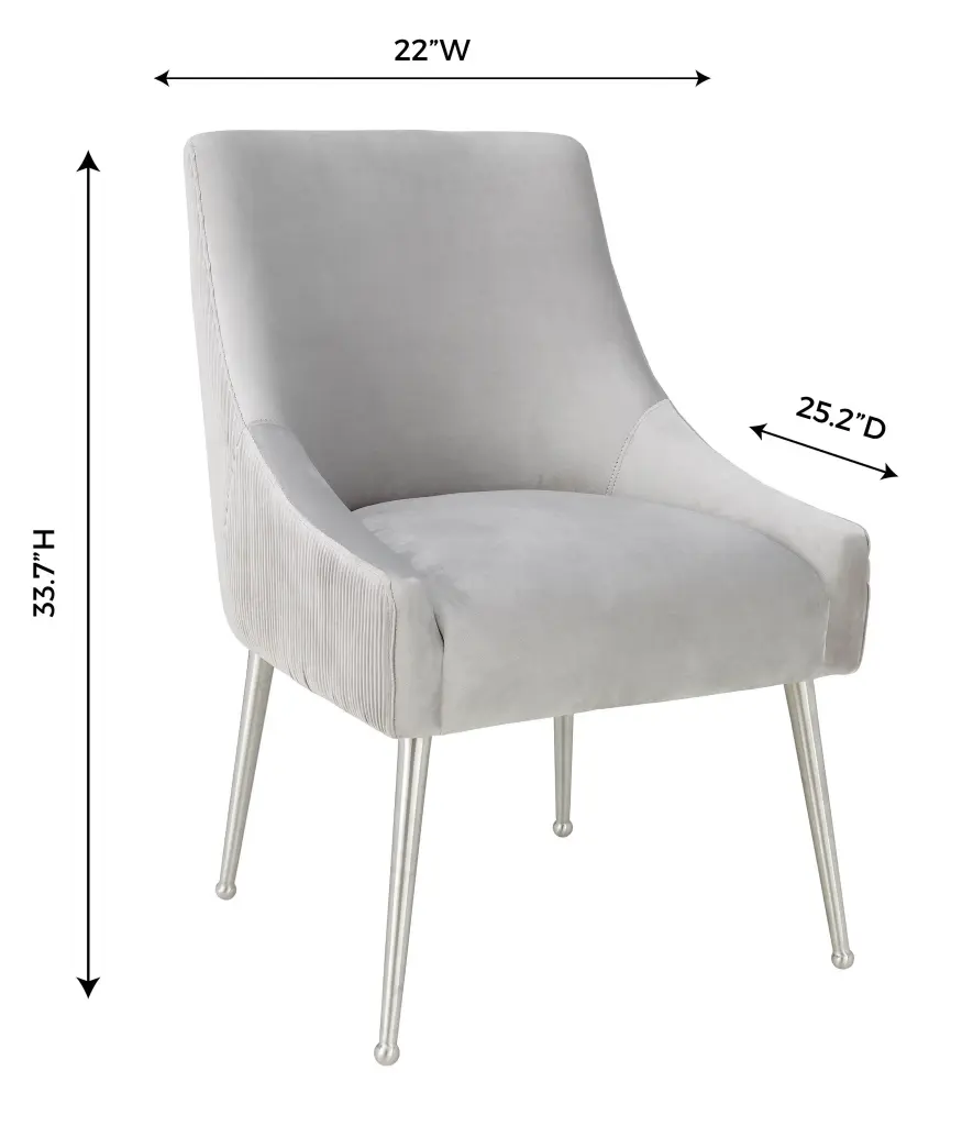 Beatrix Pleated Light Grey Velvet Side Chair - Silver Legs